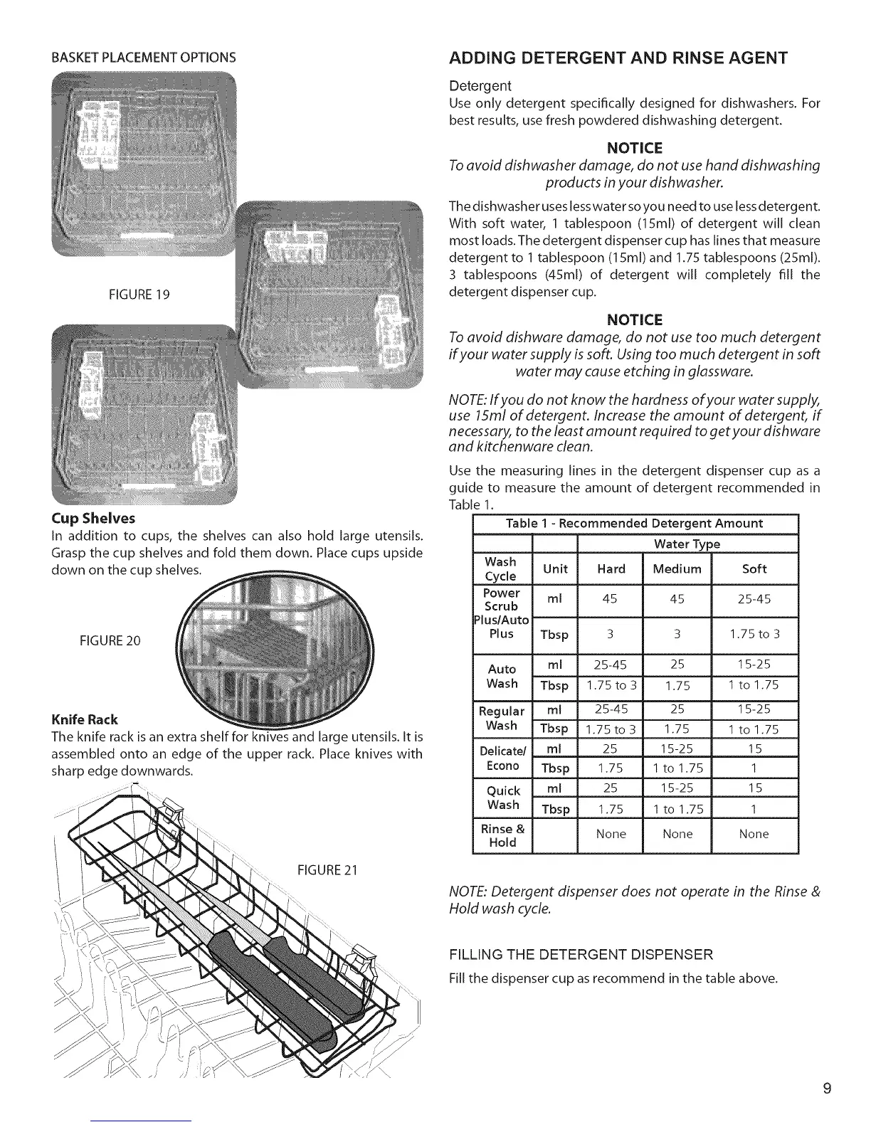 To avoid dishware damage, do not use too much detergent