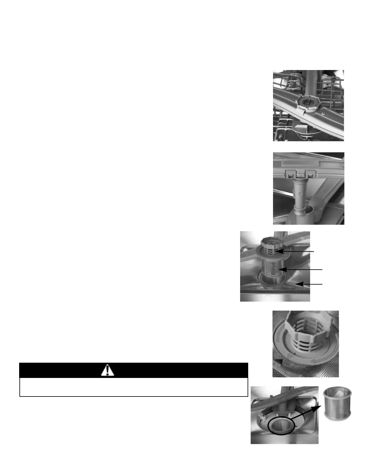 To reinstall the bottom spray arm, return the bottom spray arm to