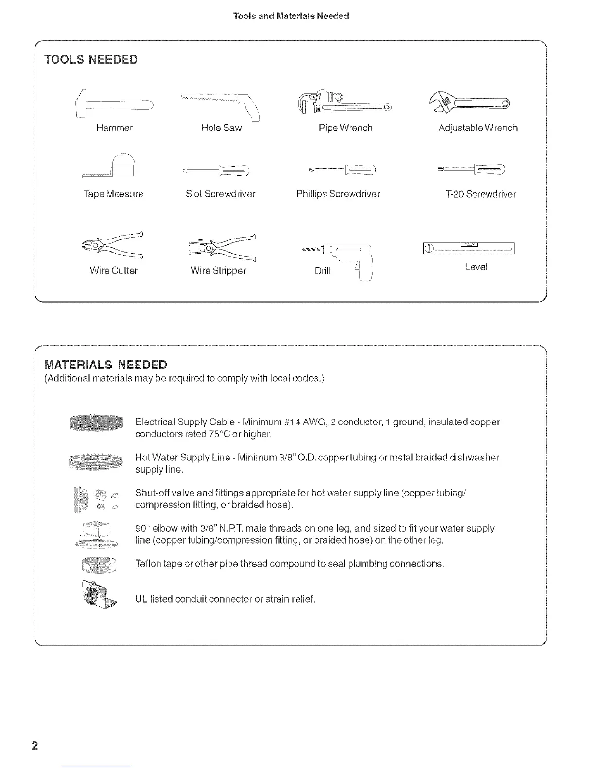 Hot Water Supply Line - Minimum 3/8" O,D, copper tubing or metal braided dishwasher