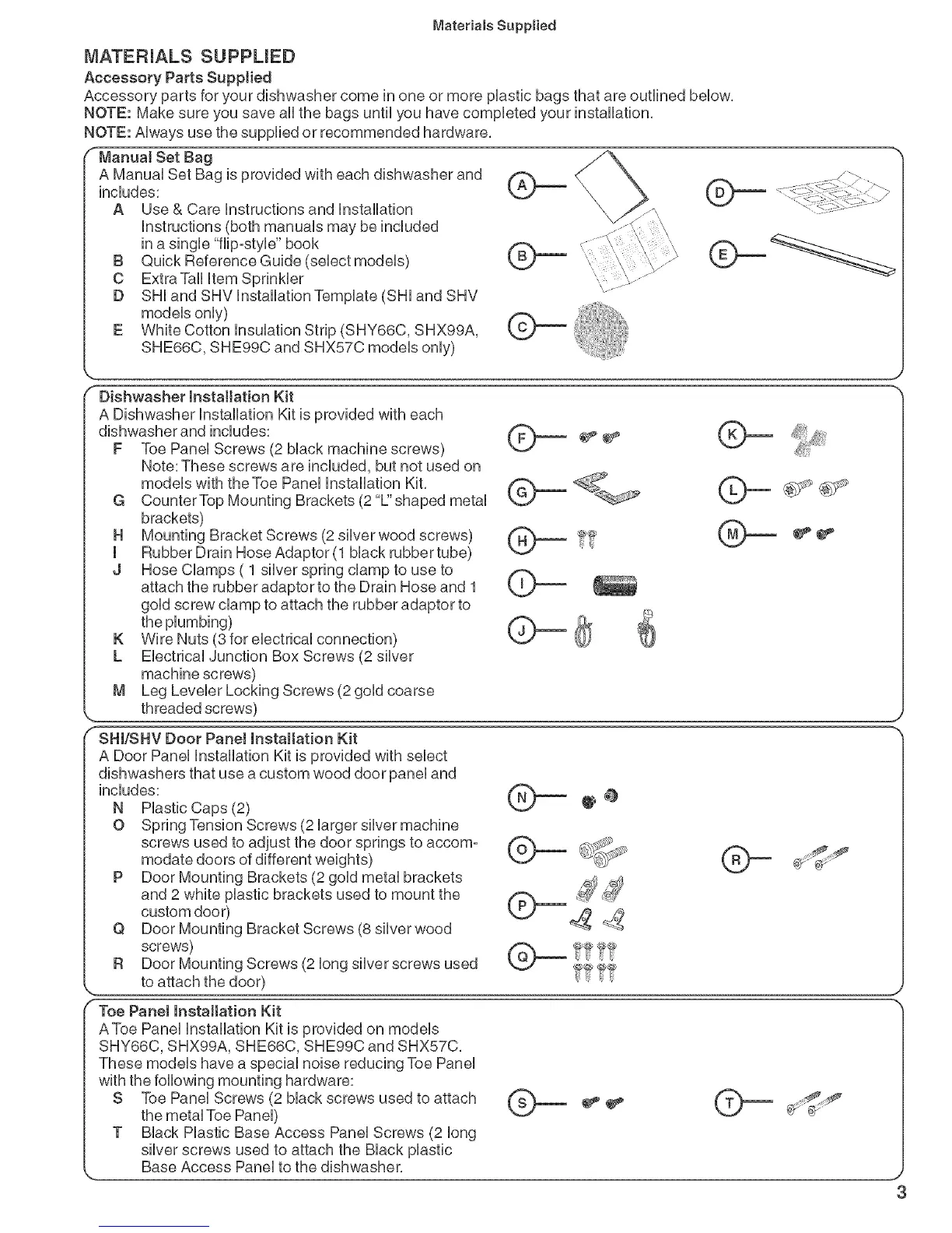 A ManuaUSet Bag is provided with each dishwasher and