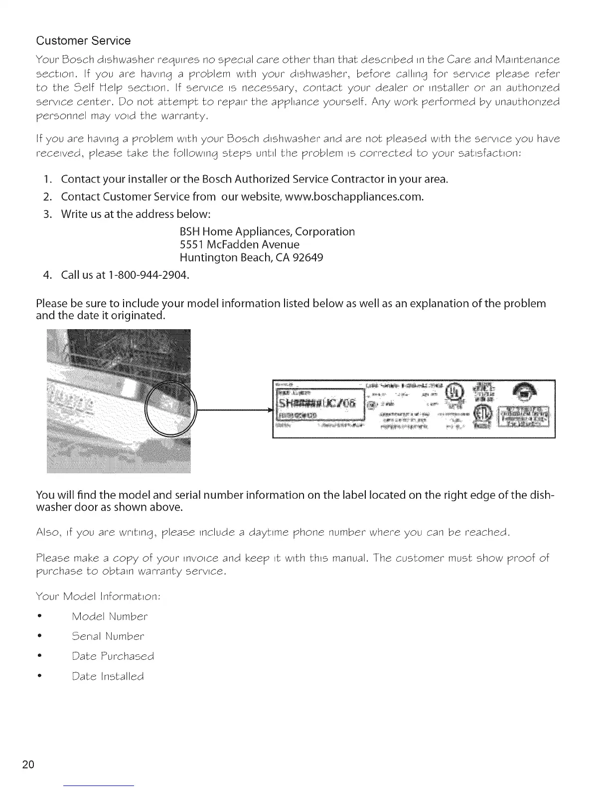 2. Contact Customer Service from our website, www.boschappliances.com.