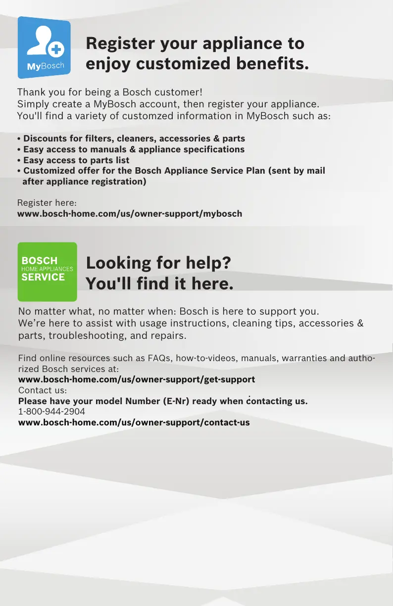 • Easy access to Bosch Home Appliances Service