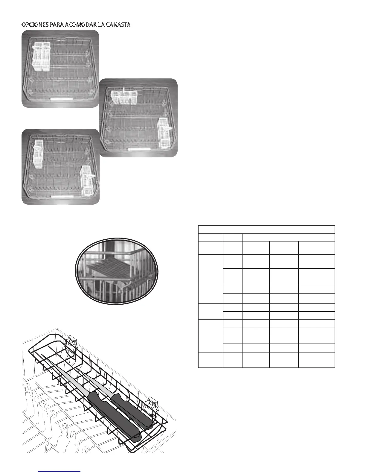 utensilios largos. Se instala sobre el borde de la rejilla superior.