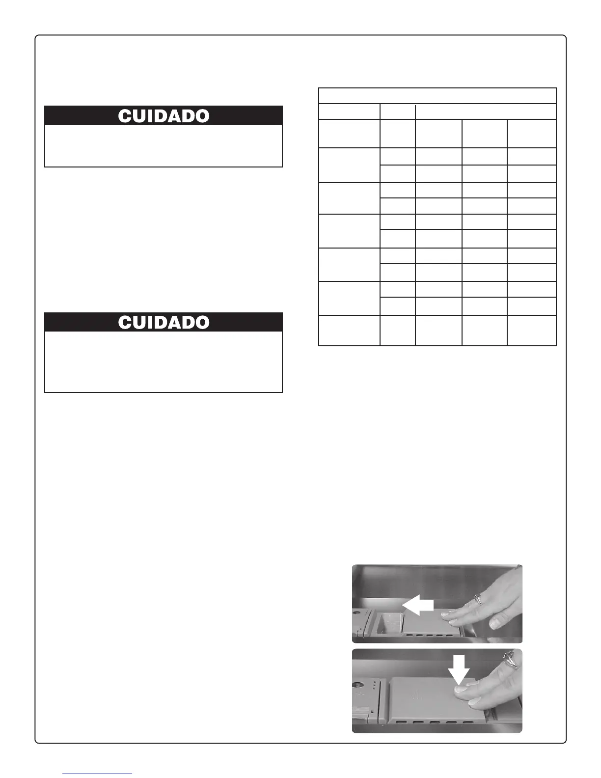 Tabla 1. Deslice la tapadera del surtidor como muestra