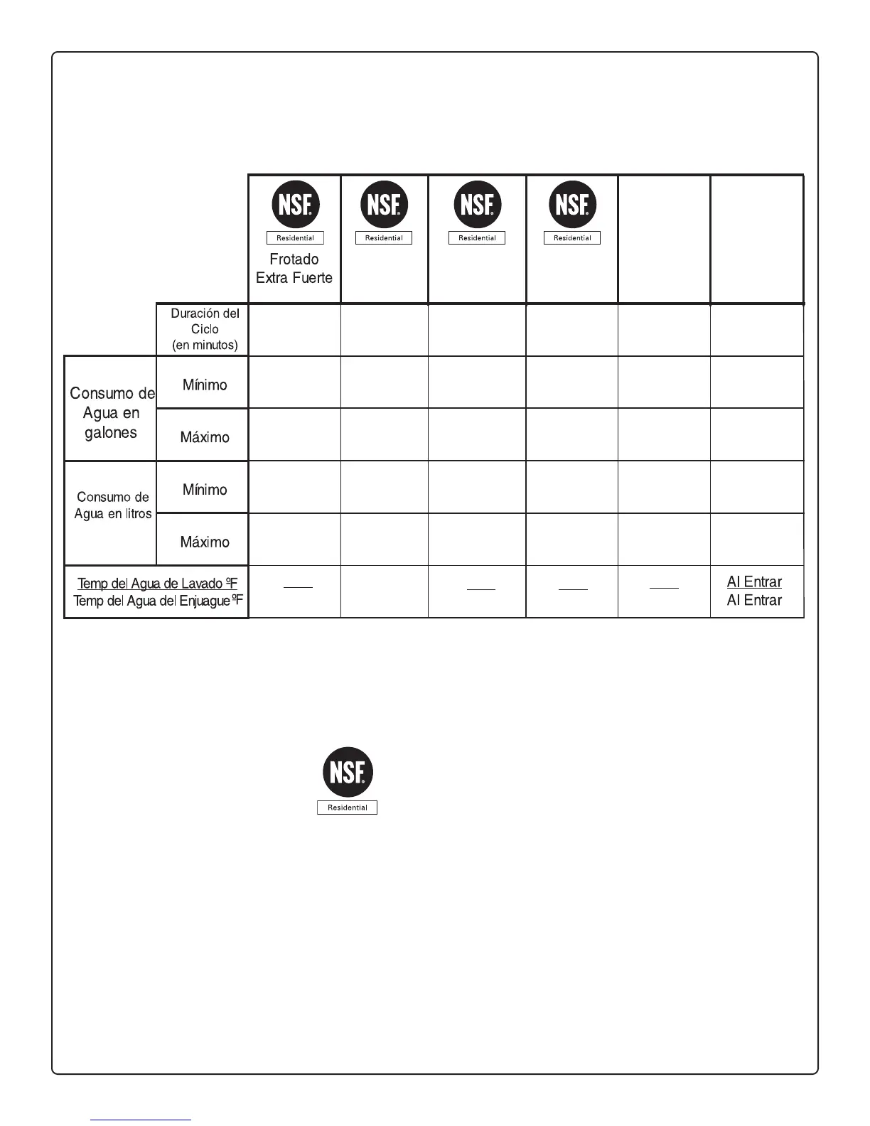 documento referente a lavavajillas para uso residendial ANSI/NSF 184, “Residential Dishwashers”. Averigüe más