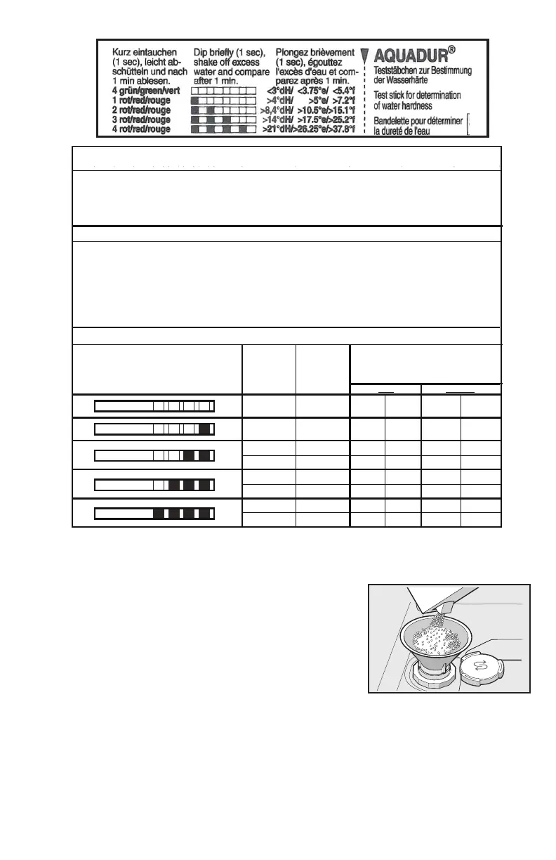 inférieur du lave-vaisselle. La quantité de sel ajoutée dépend de la dureté de l'eau à votre domicile. La dureté de l'eau à votre domicile