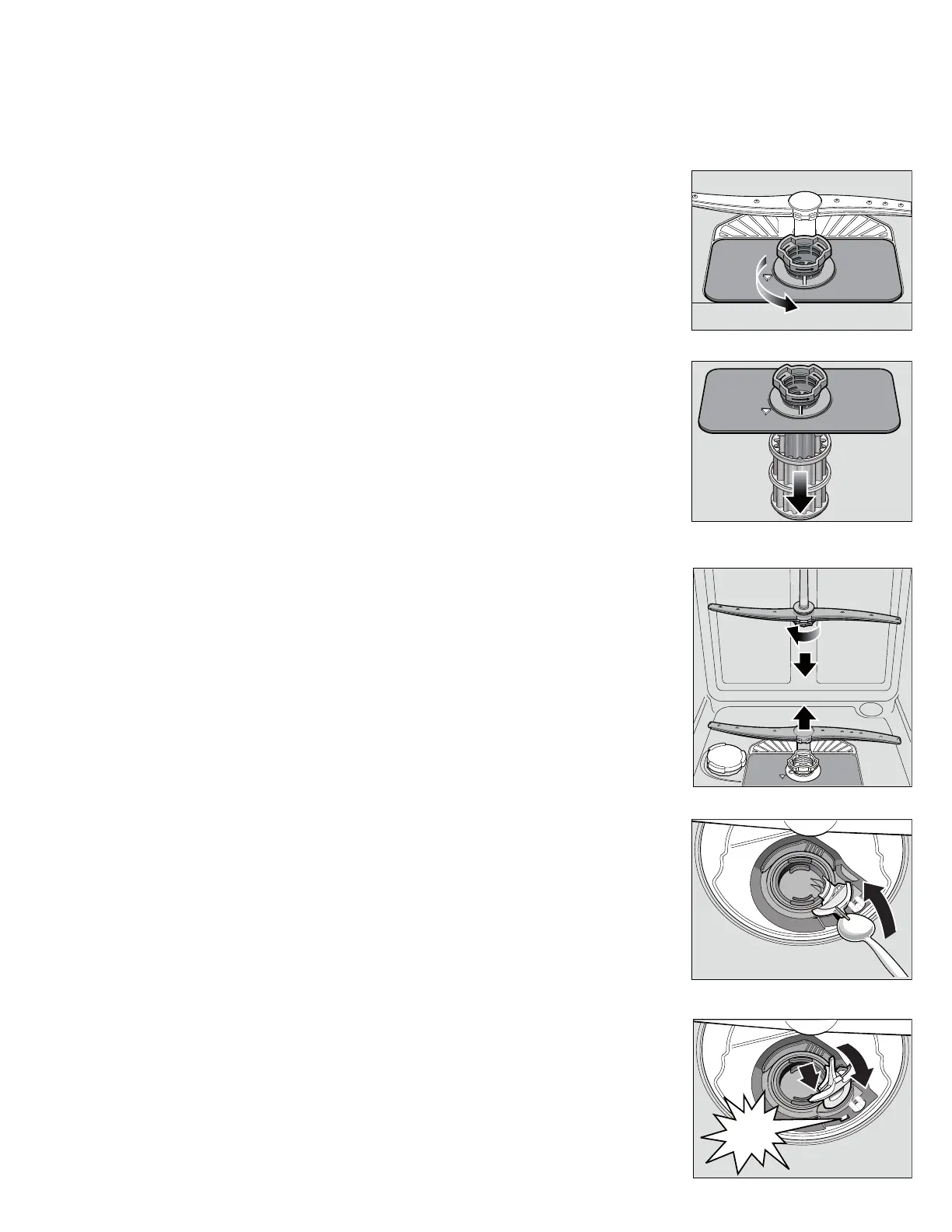 • Vérifier si les embouts des bras gicleurs sont obstrués.