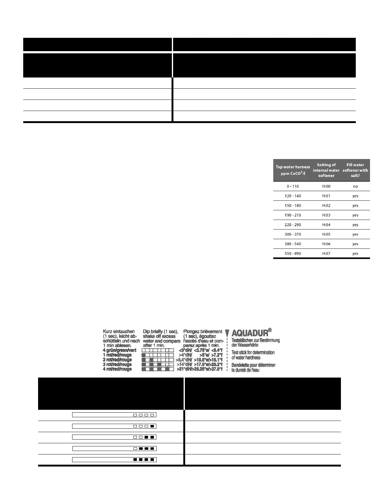 fábrica - consulte la tabla a la derecha). La cantidad requerida de sal