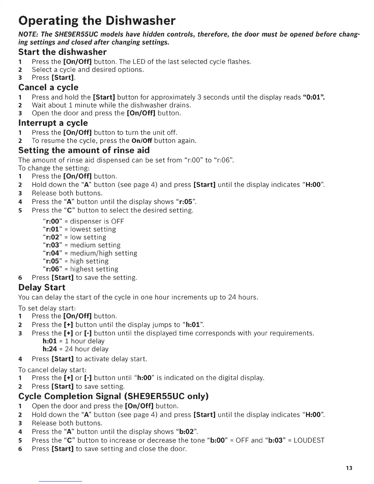 The amount of rinse aid dispensed can be set from "r:00" to "r:06".
