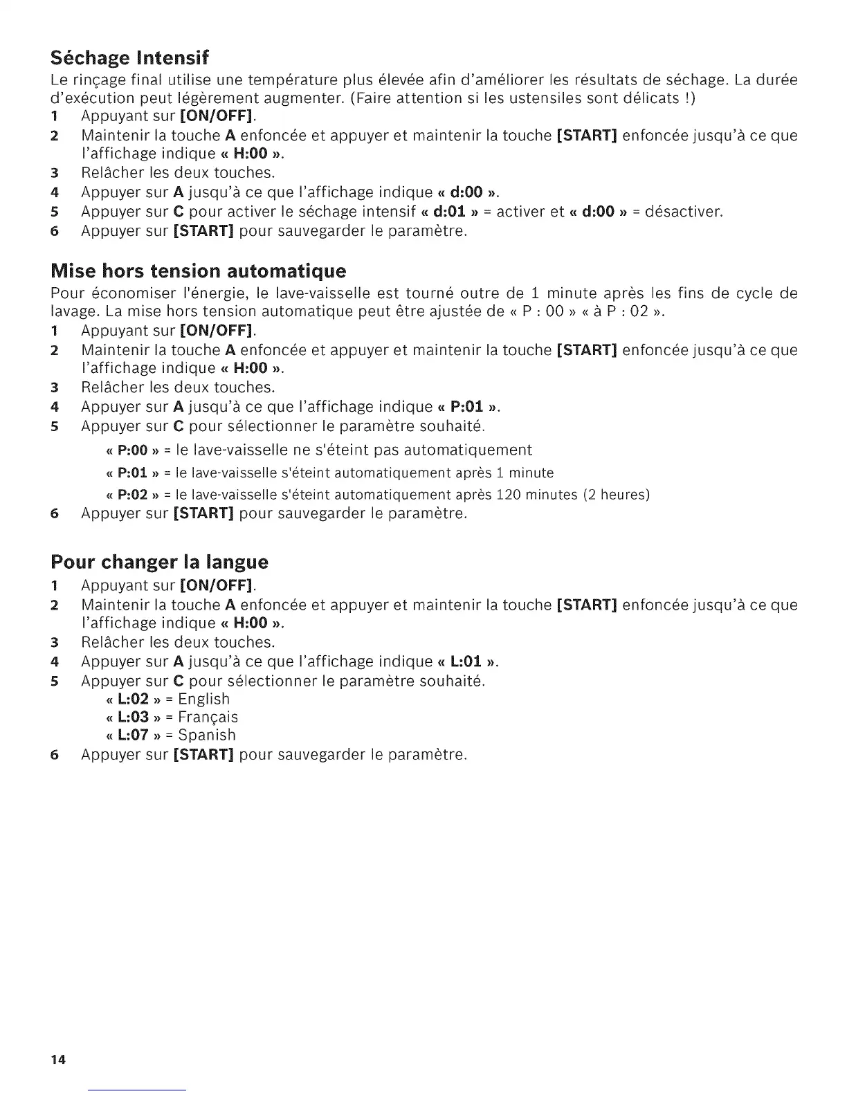 lavage. La mise hors tension automatique peut _tre ajust_e de <<P : 00 >><_& P : 02 >>.