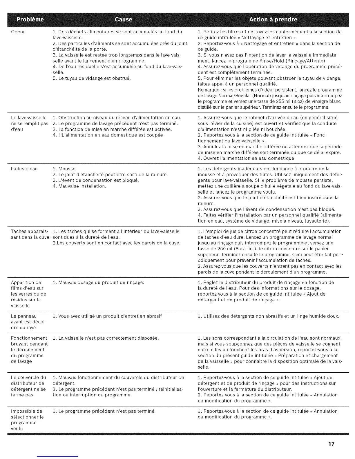 1. La vaisselle n'est pas correctement dispos_e. 1. Les sons correspondant A la circulation de I'eau sont normaux,