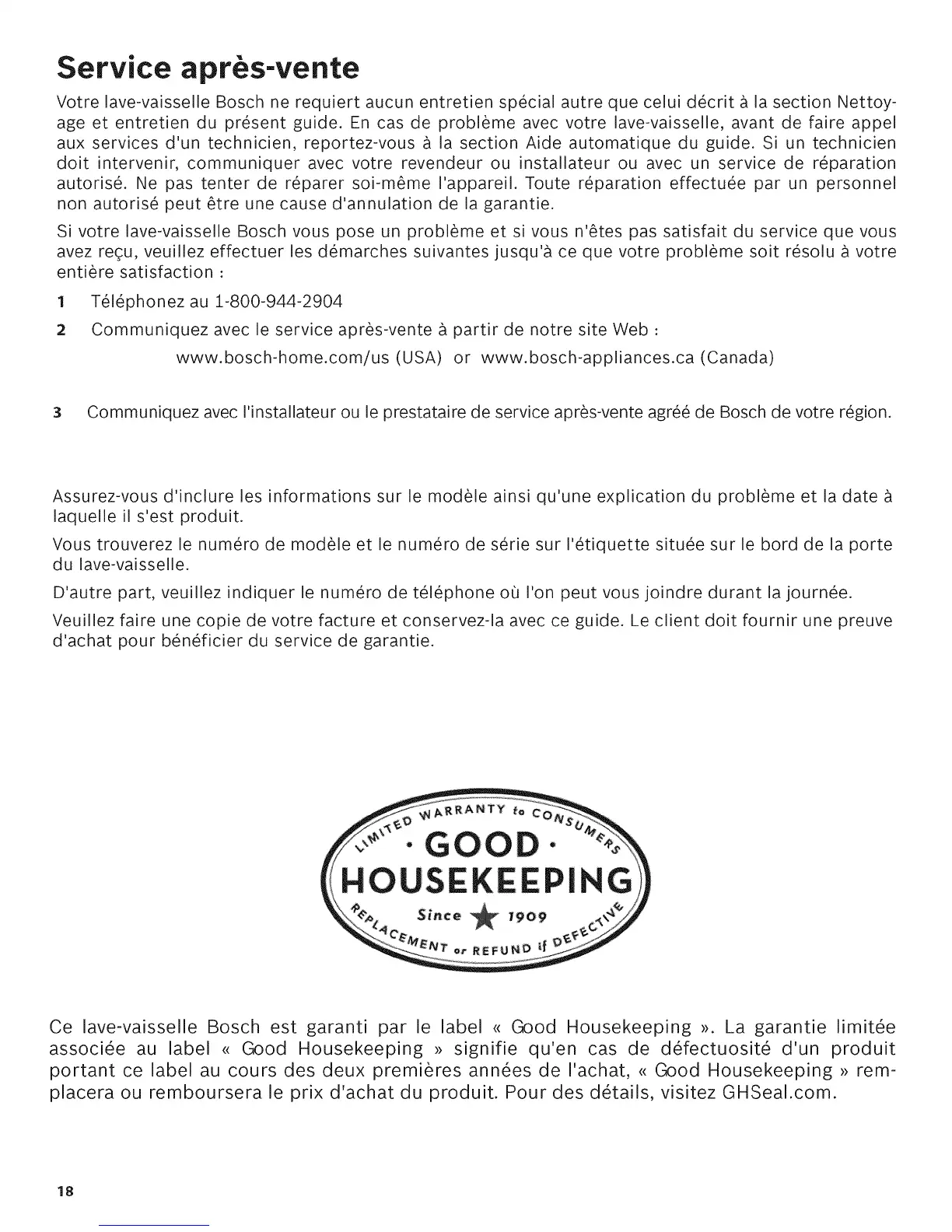 Ce lave-vaisselle Bosch est garanti par le label <<Good Housekeeping >). La garantie limit_e