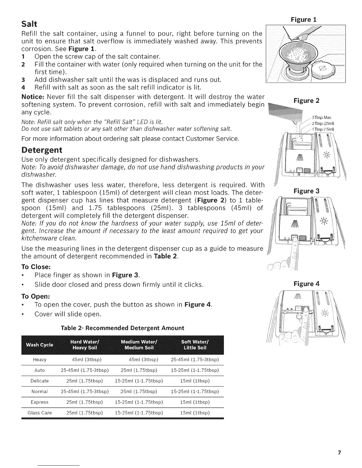 Notice: Never fil! the salt dispenser with detergent. It will destroy the water