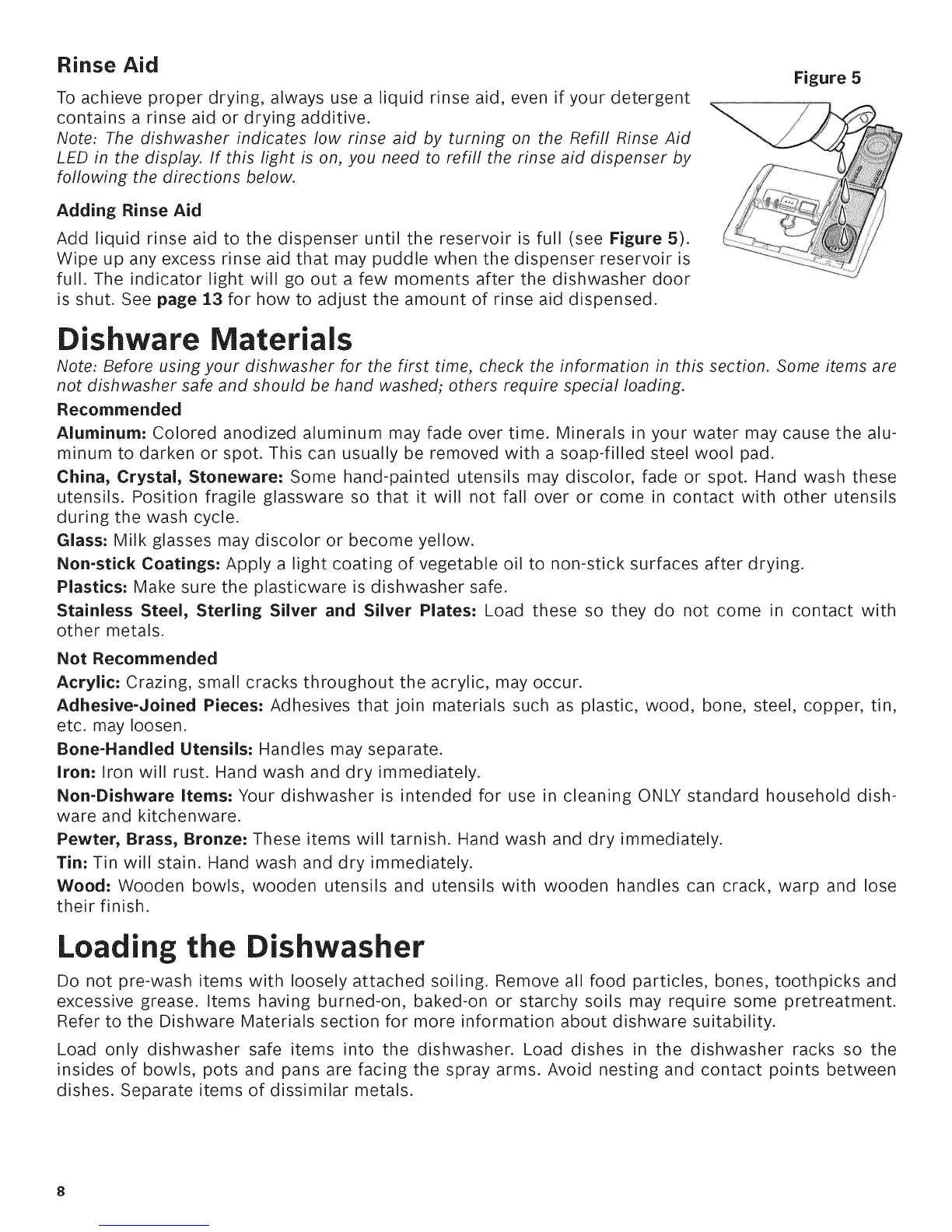Add liquid rinse aid to the dispenser until the reservoir is full (see Figure 5).