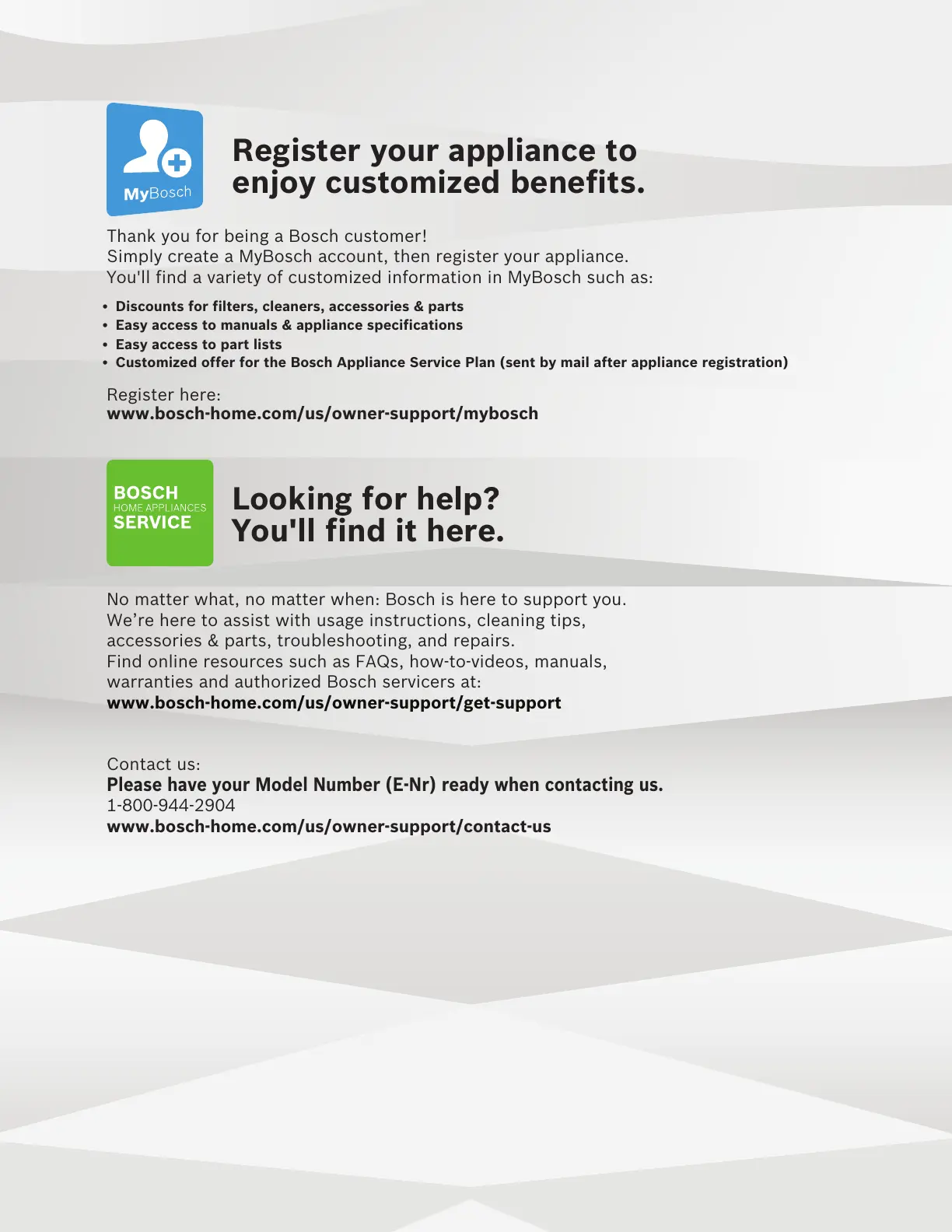 • Customized offer for the Bosch Appliance Service Plan (sent by mail after appliance registration)