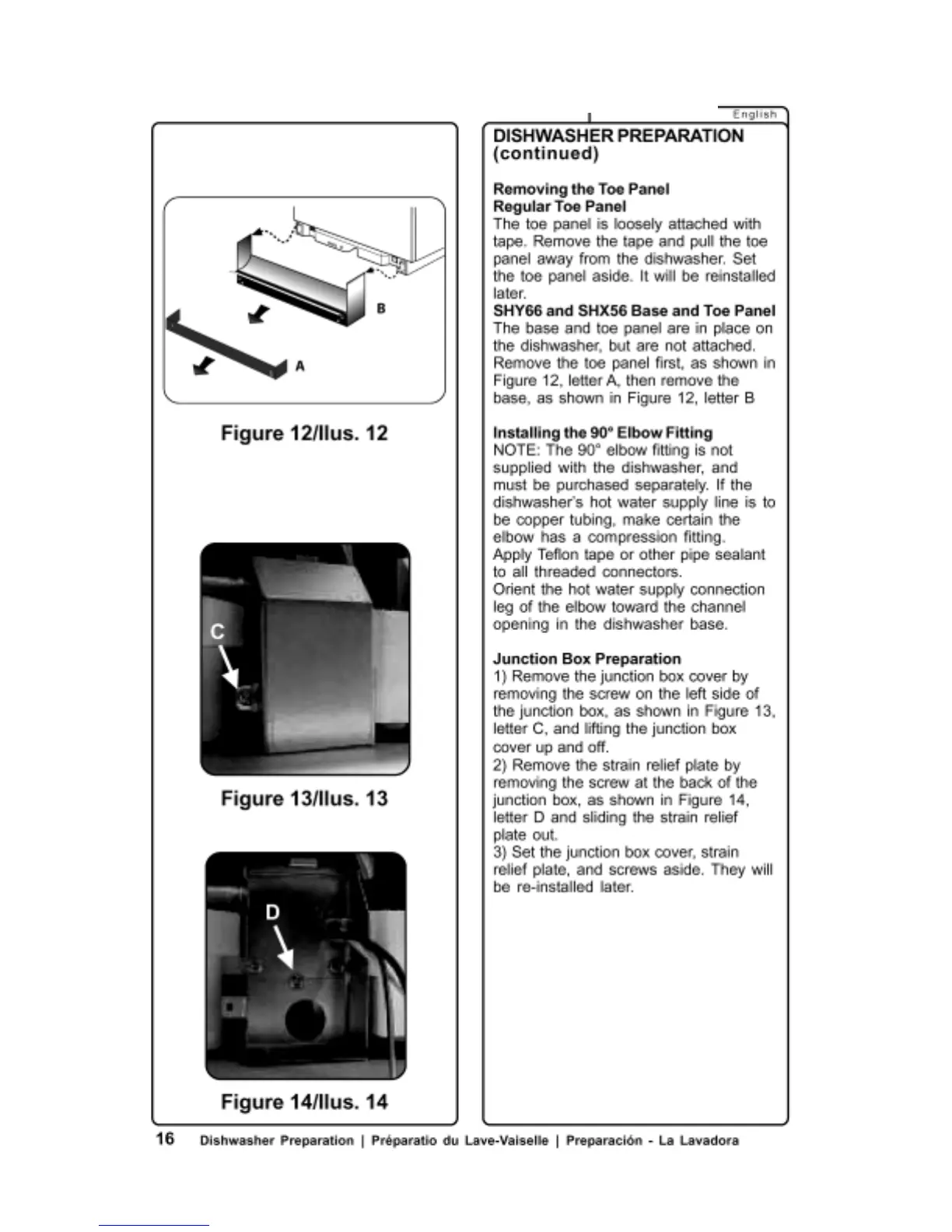 Bosch SHV4803 - Junction Box Preparation; Installing the 90 Degrees Elbow Fitting; Regular Toe Panel; Removing the Toe Panel