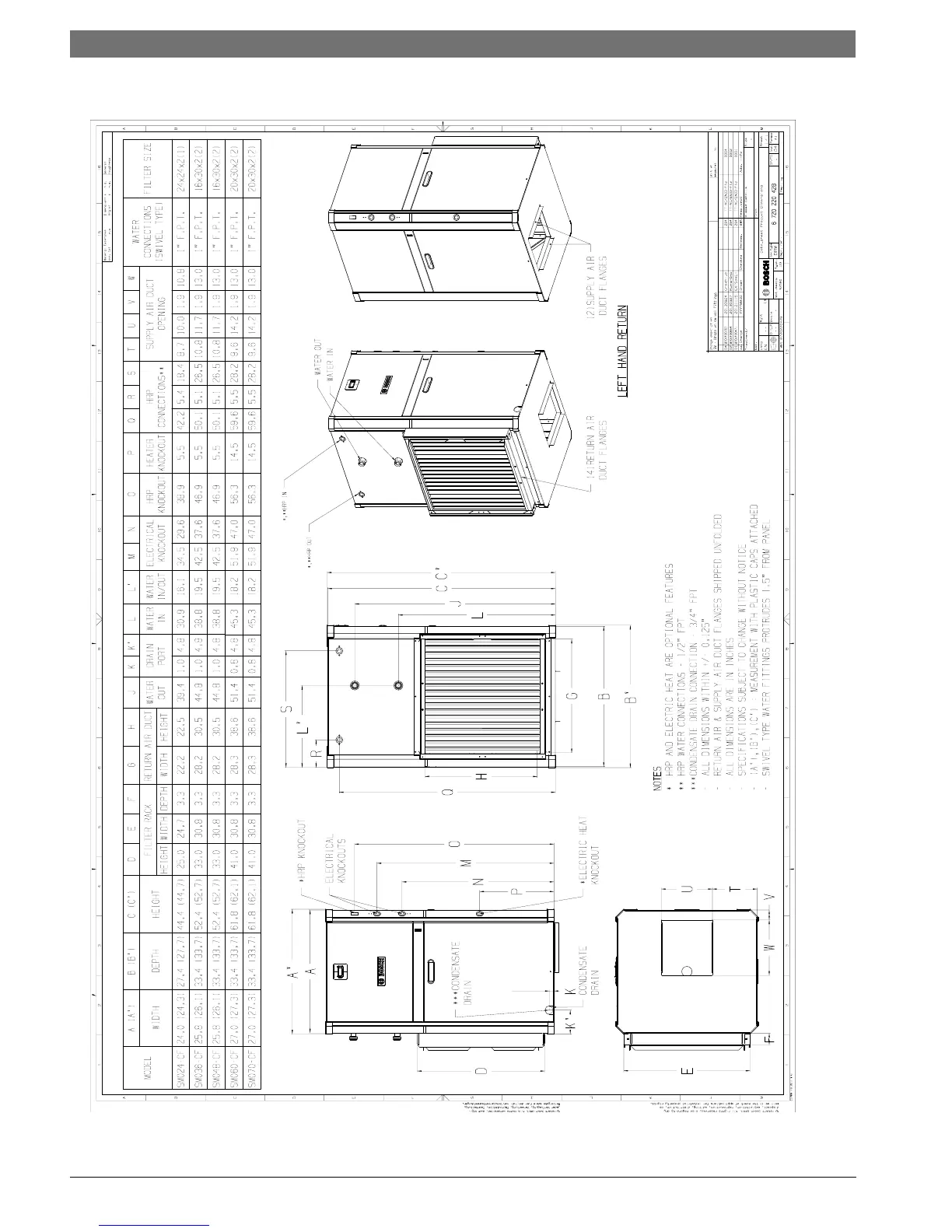 Bosch SM048 - Dimensional Drawings: Counter Flow Configuration; Counter Flow Dimensions (Figure #143); Counter Flow Dimensions Table