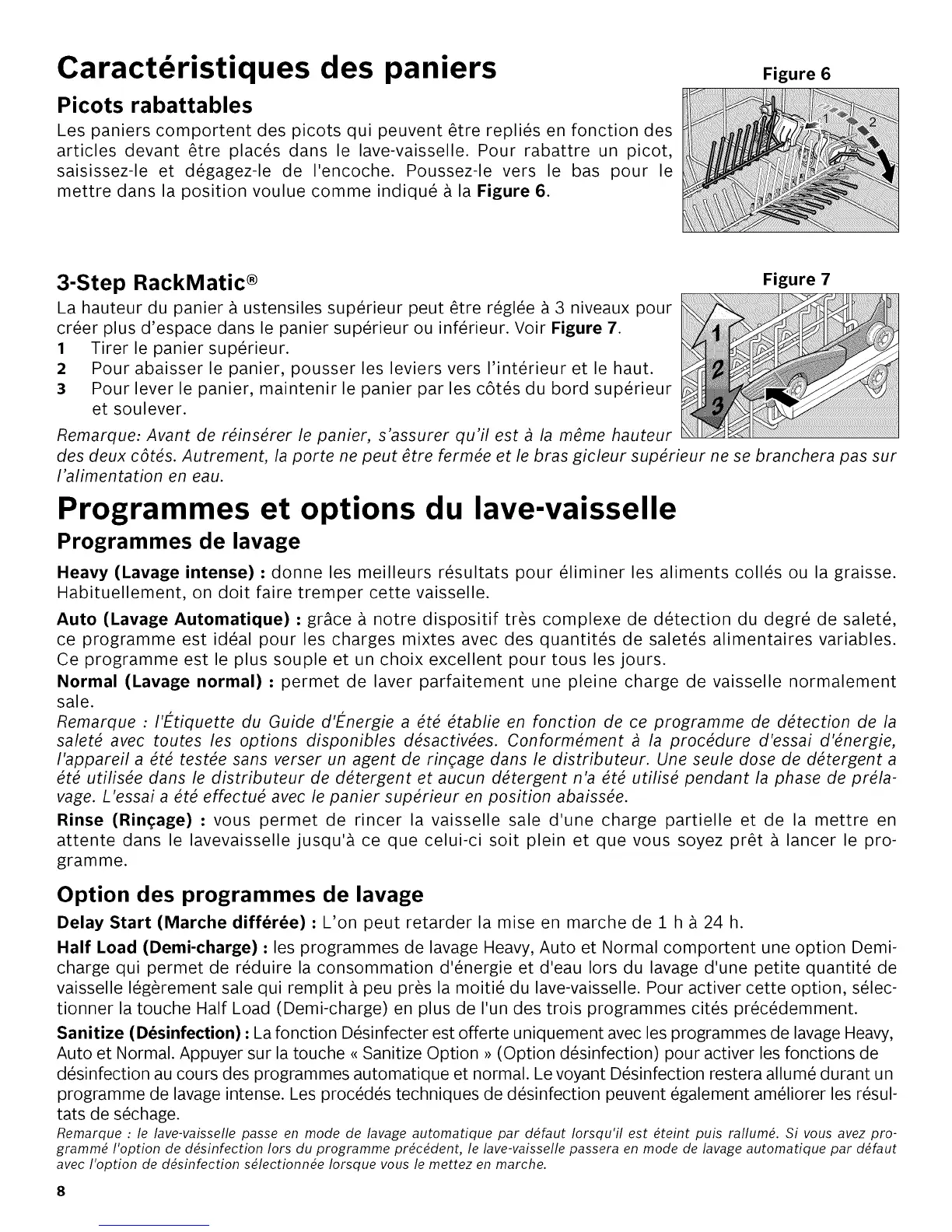 Sanitize (D_sinfection) : La fonction D_sinfecter est offerte uniquement avec les programmes de lavage Heavy,