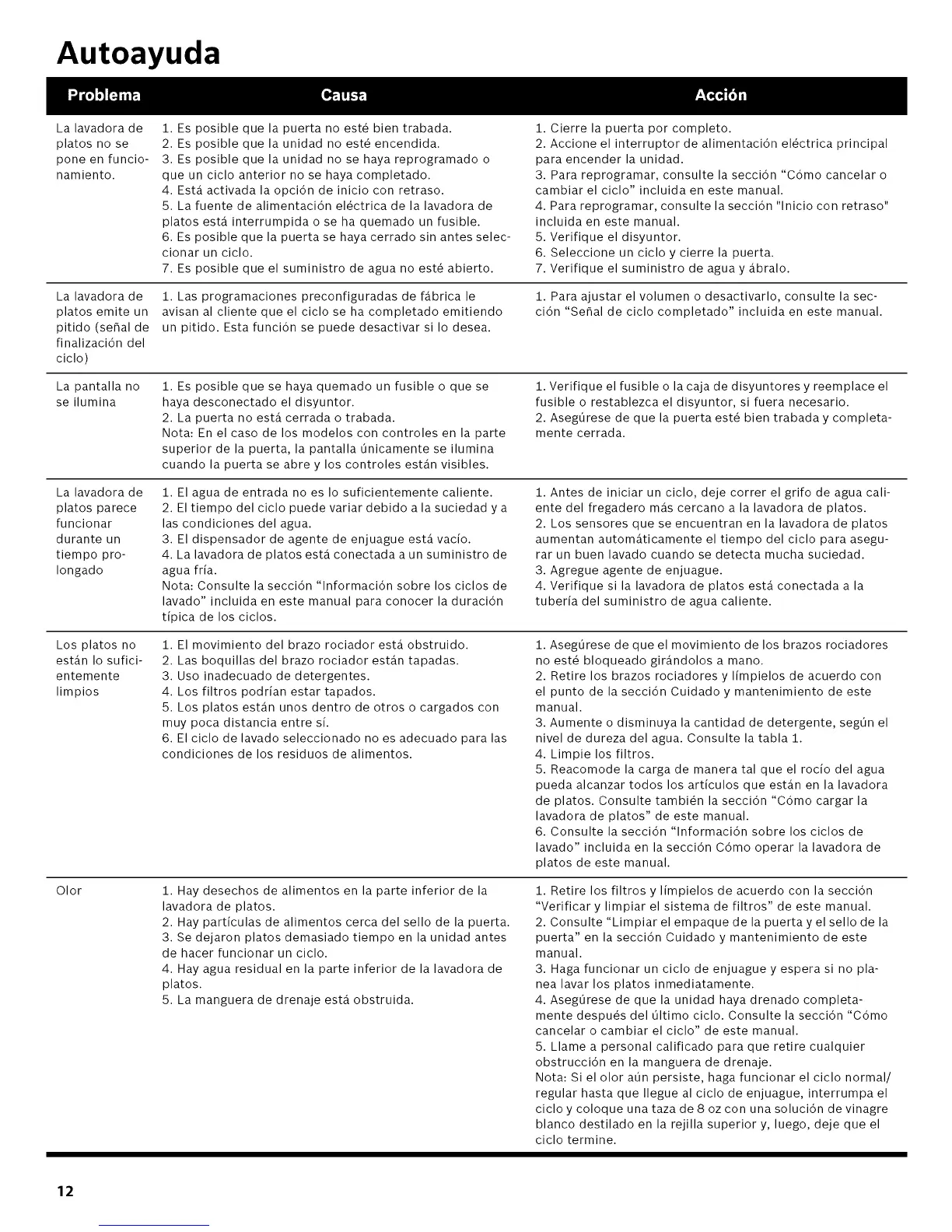 Nota: Si el olor aOn persiste, haga funcionar el ciclo normal/