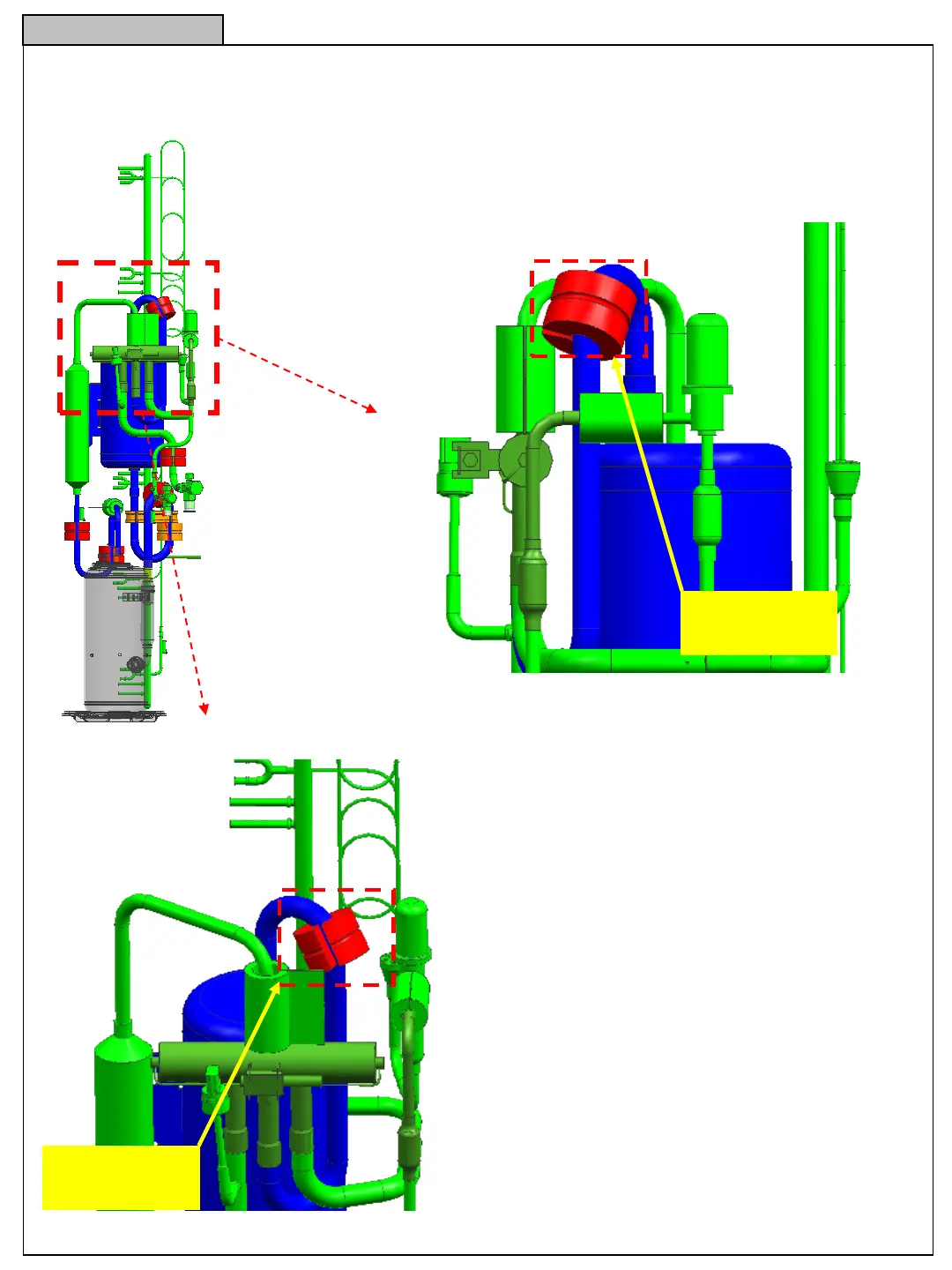 - Add a damper (Ø19.05) provided in direction shown below. (Accumulator part)