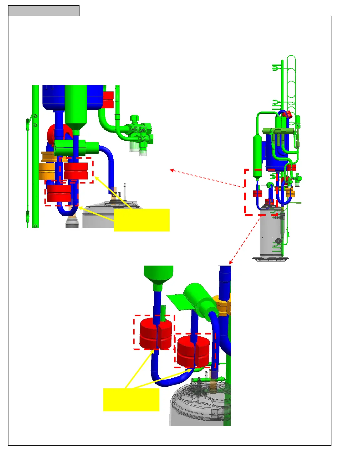 - Add 2 dampers (Ø12.7) provided in direction shown below. (Comp_Discharge part)