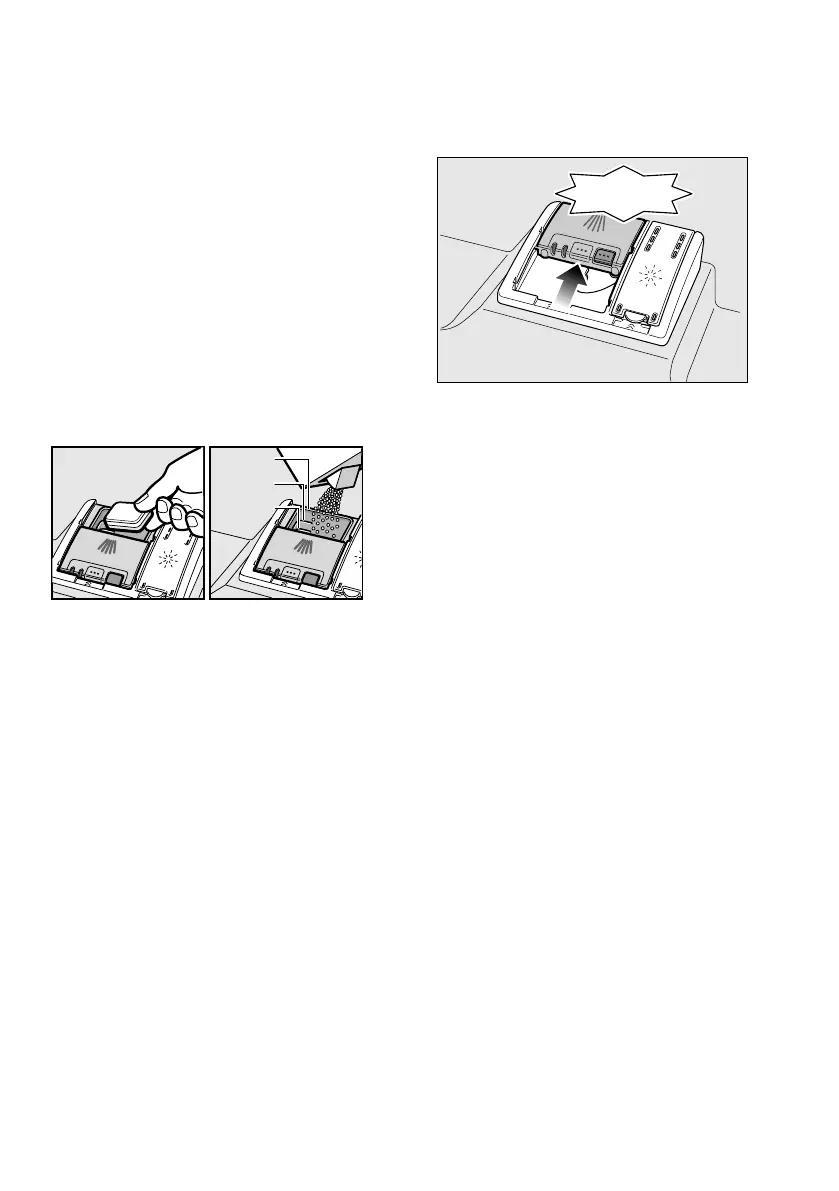 Pour detergent into the dry detergent