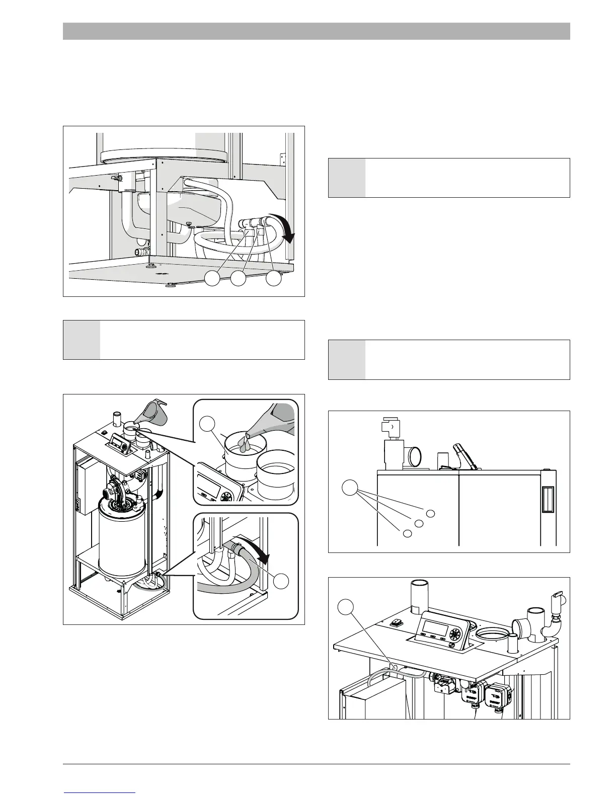 To ll the condensate discharge add water from the vent (1) until you see