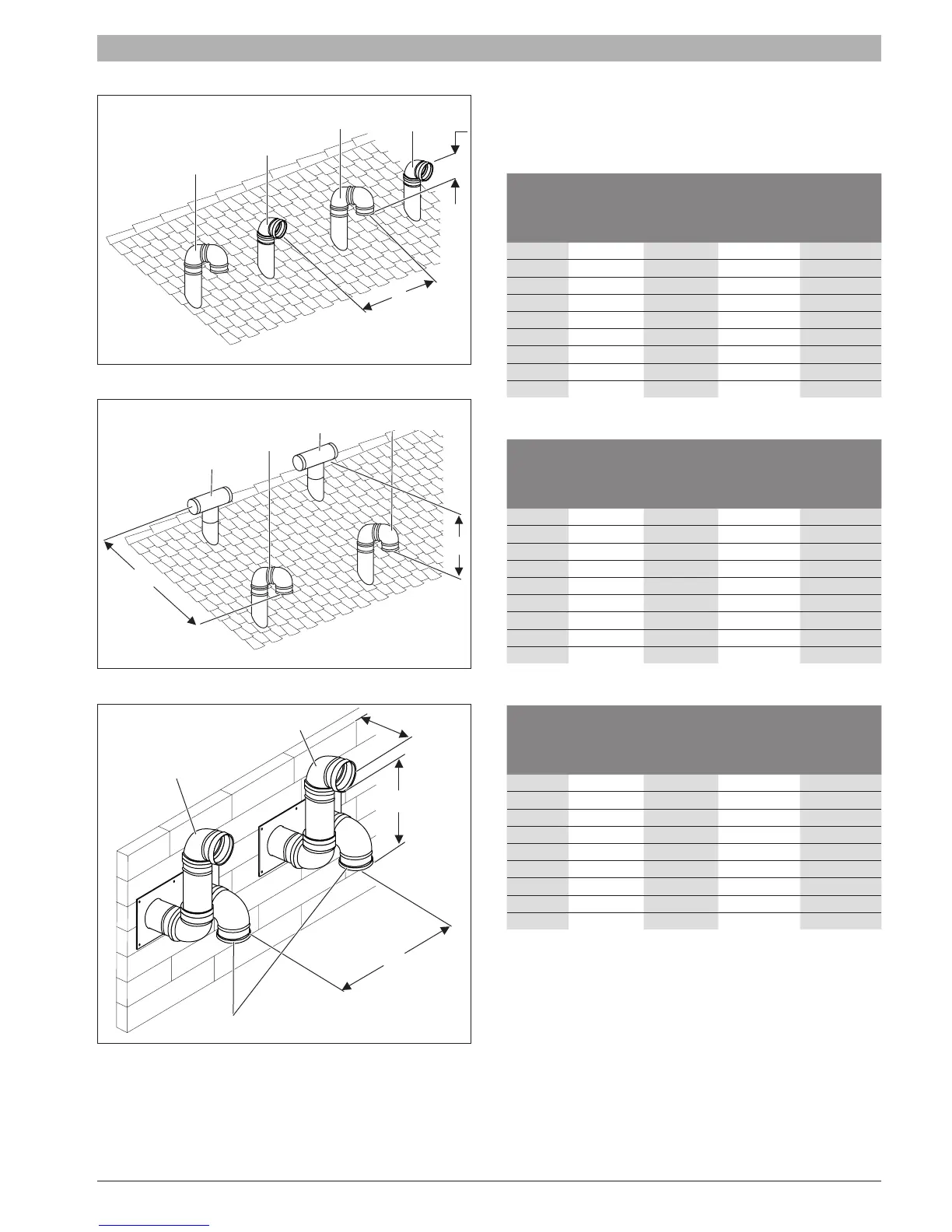 the vent and combustion air pipe as reported in the following tables: