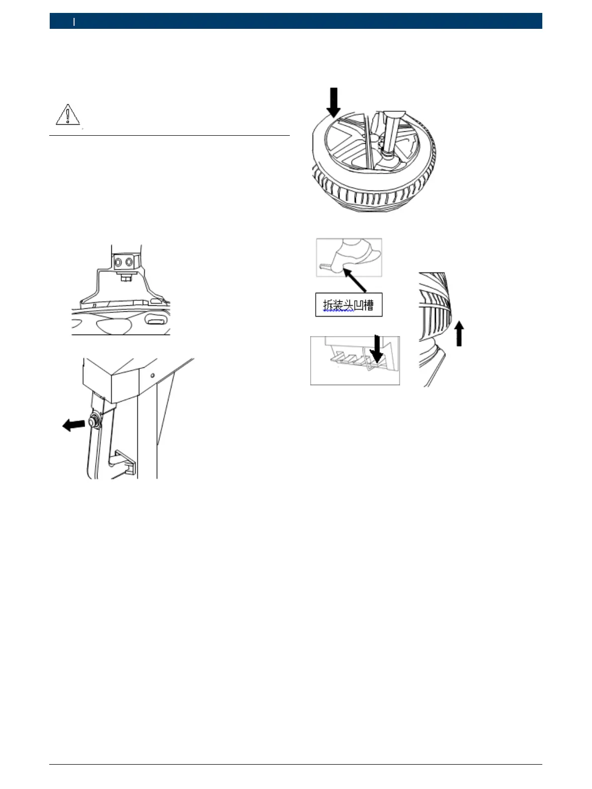 2. 同样,在此过程中可用下铲胎轮上抬下轮胎边,帮助拆装