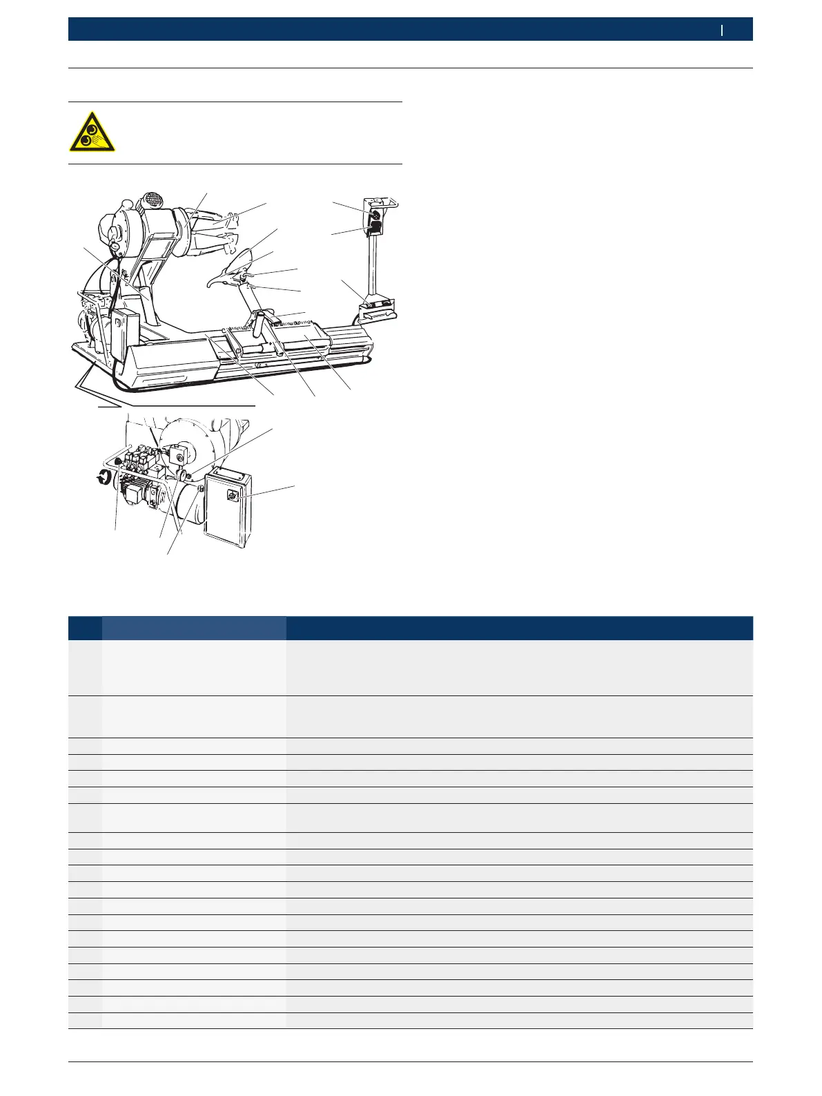 5 Flangia di serraggio Bloccaggio idraulico del cerchione e rotazione in senso orario e antiorario.