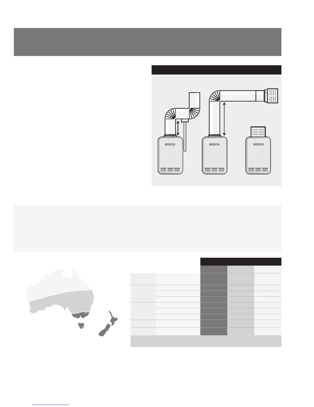 Bosch TF250 - Commercial flueing accessories; Sizing guide; Sizing guide by bathrooms and climate