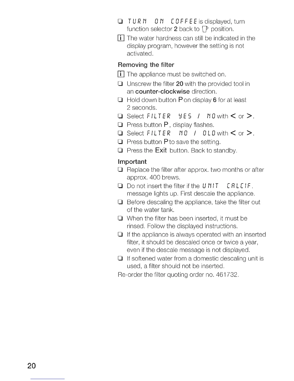 filter, it should be descaled once or twice a year,