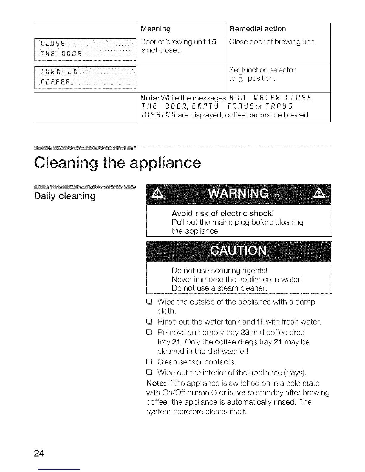 ¢;1!5151,,"S are displayed, coffee cannot be brewed.
