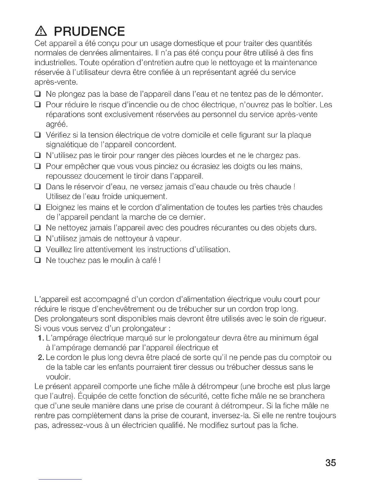 Cet appareil a ete con_u pour un usage domestique et pour traiter des quantites