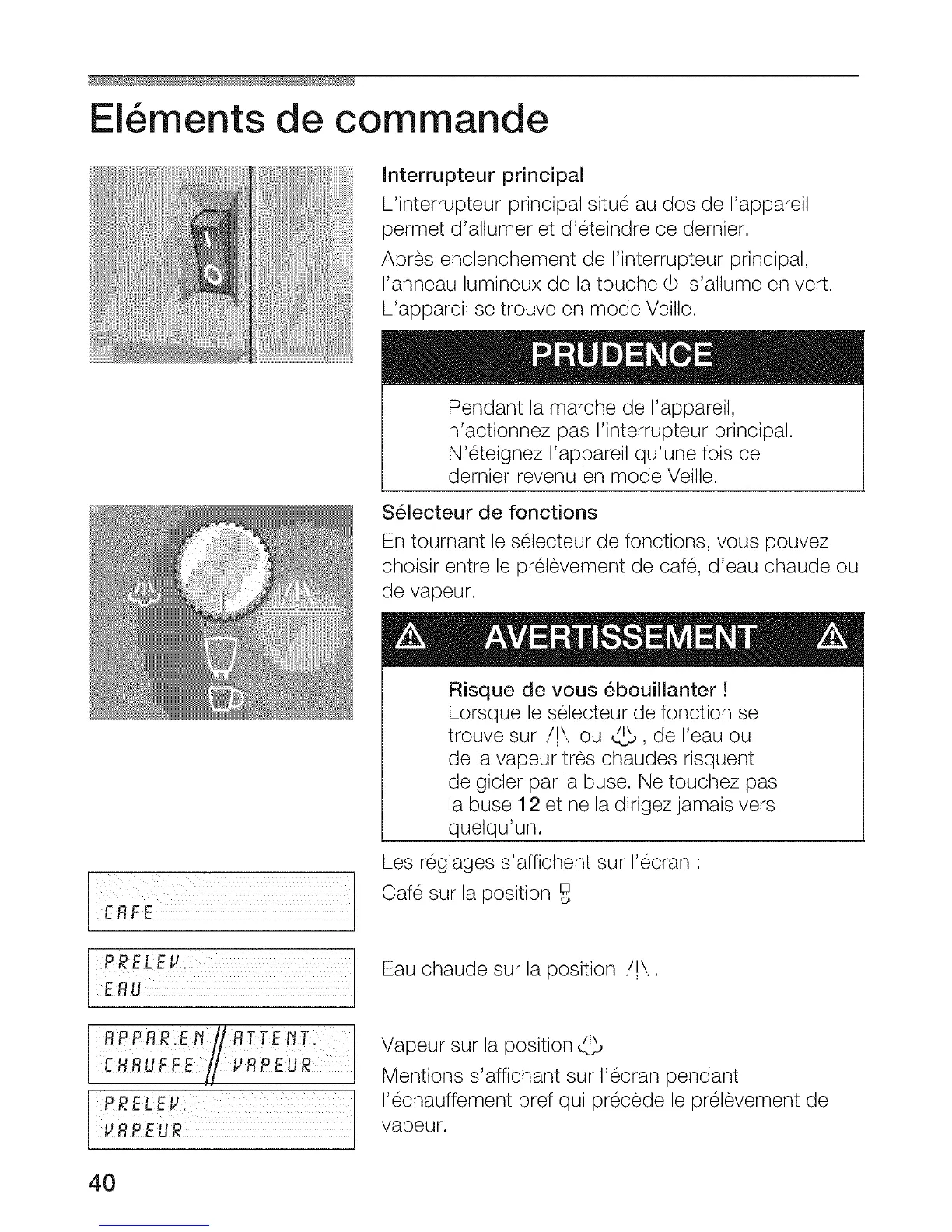 Apres enclenchement de I'interrupteur principal,