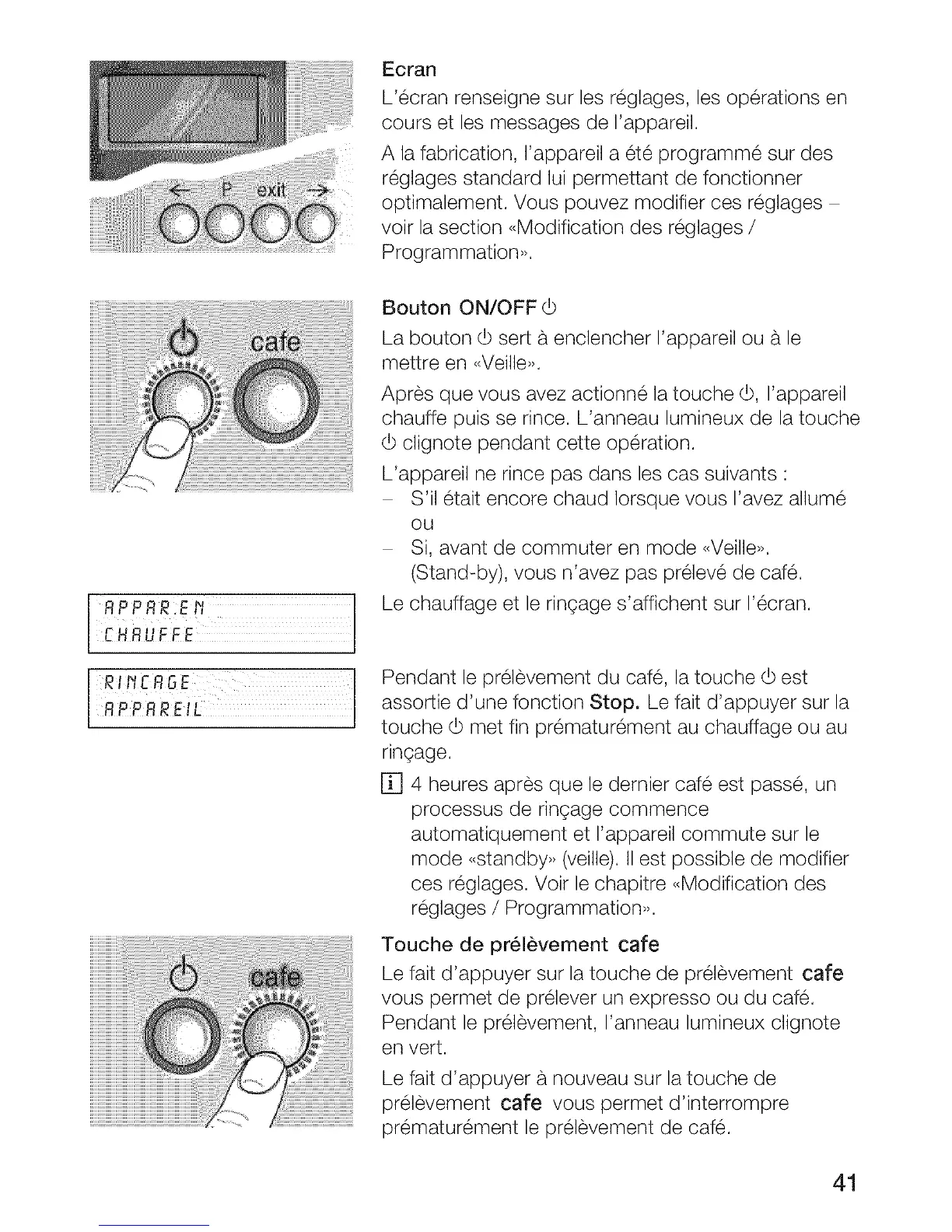 Le fait d'appuyer sur la touche de prelevement cafe