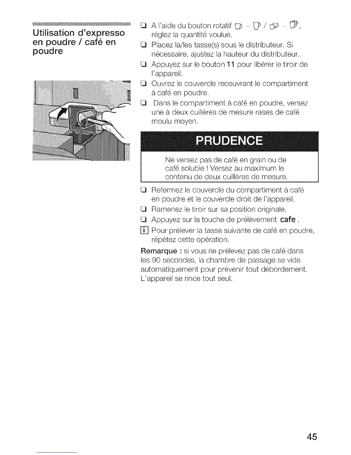 [] Pour prelever la tasse suivante de cafe en poudre,