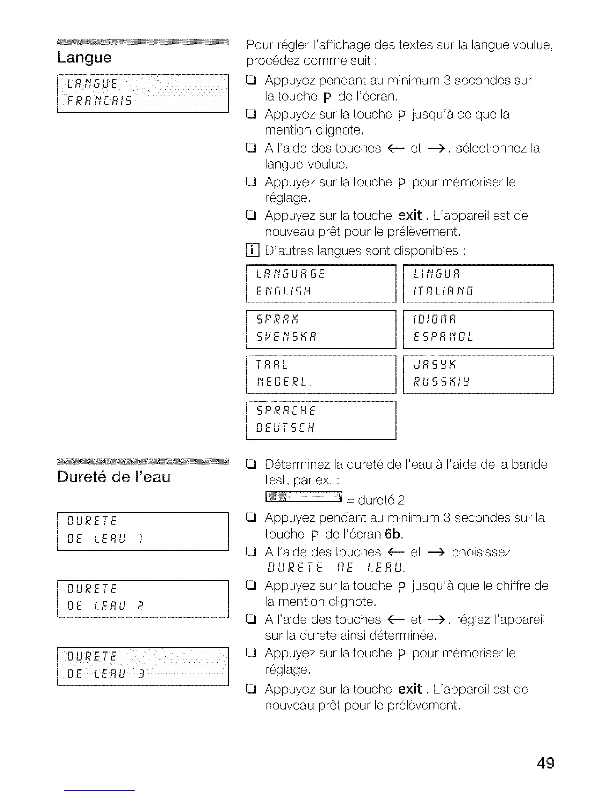 Pour regler I'affichage des textes sur la langue voulue,