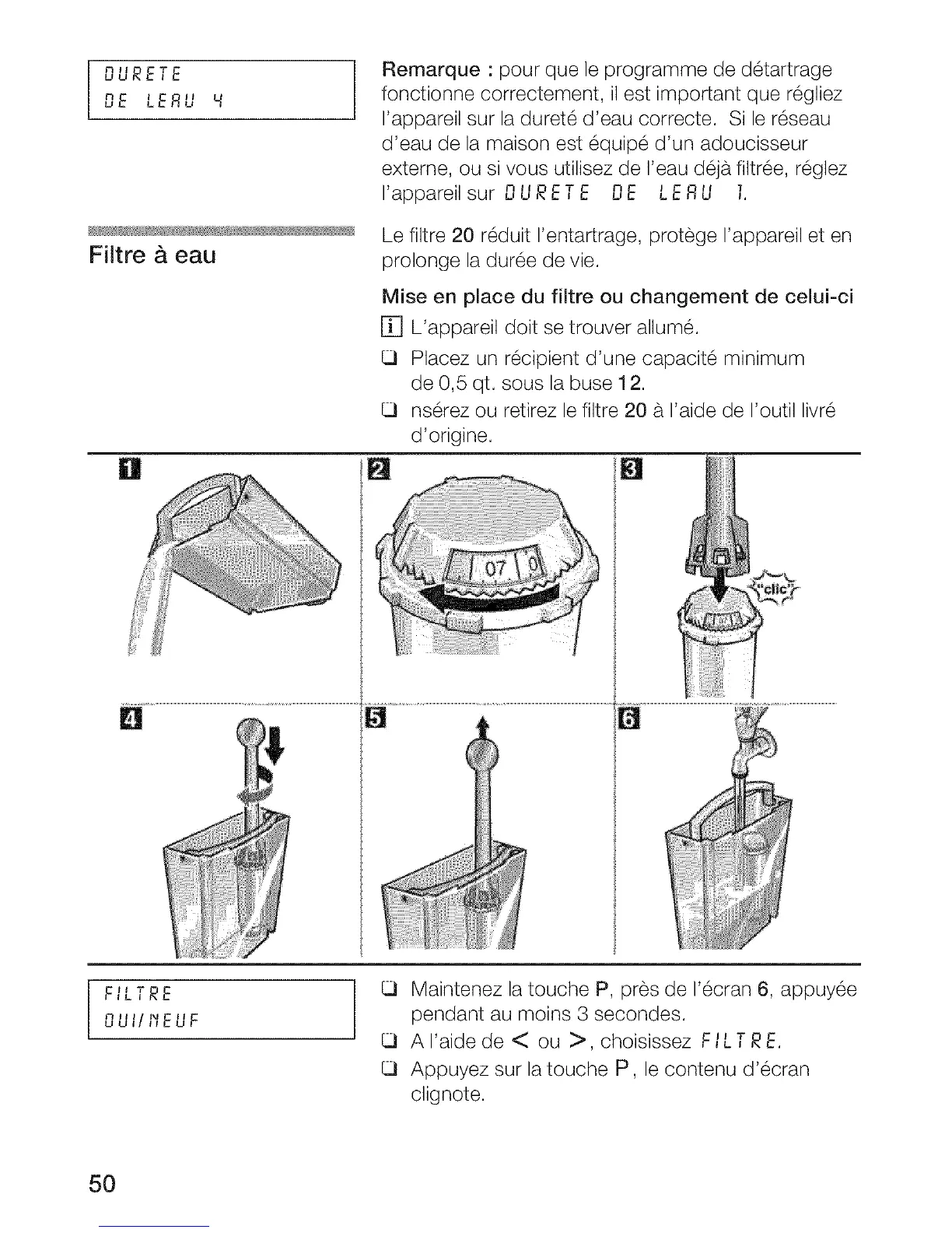 Le filtre 20 reduit I'entartrage, protege I'appareil et en