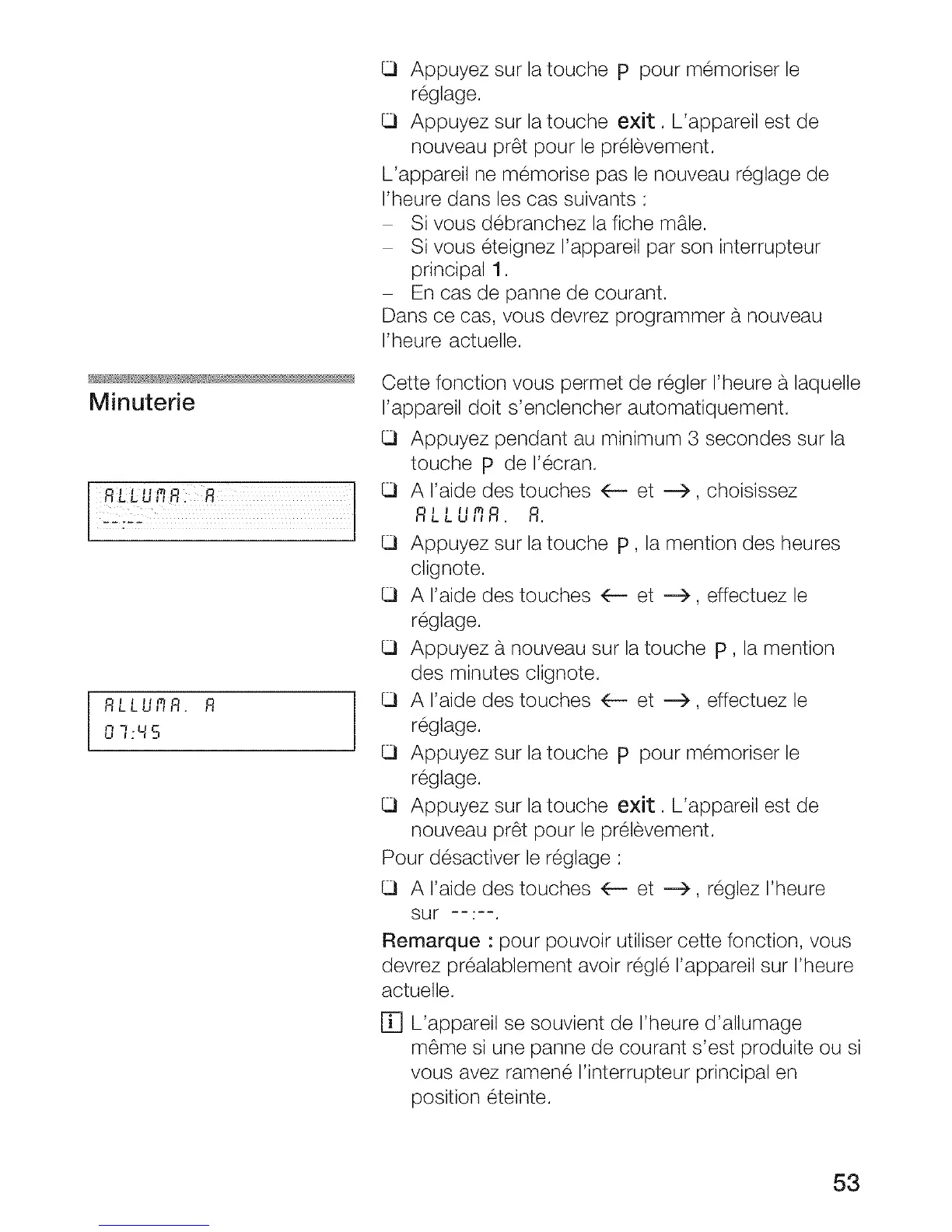 [] L'appareil se souvient de I'heure d'allumage