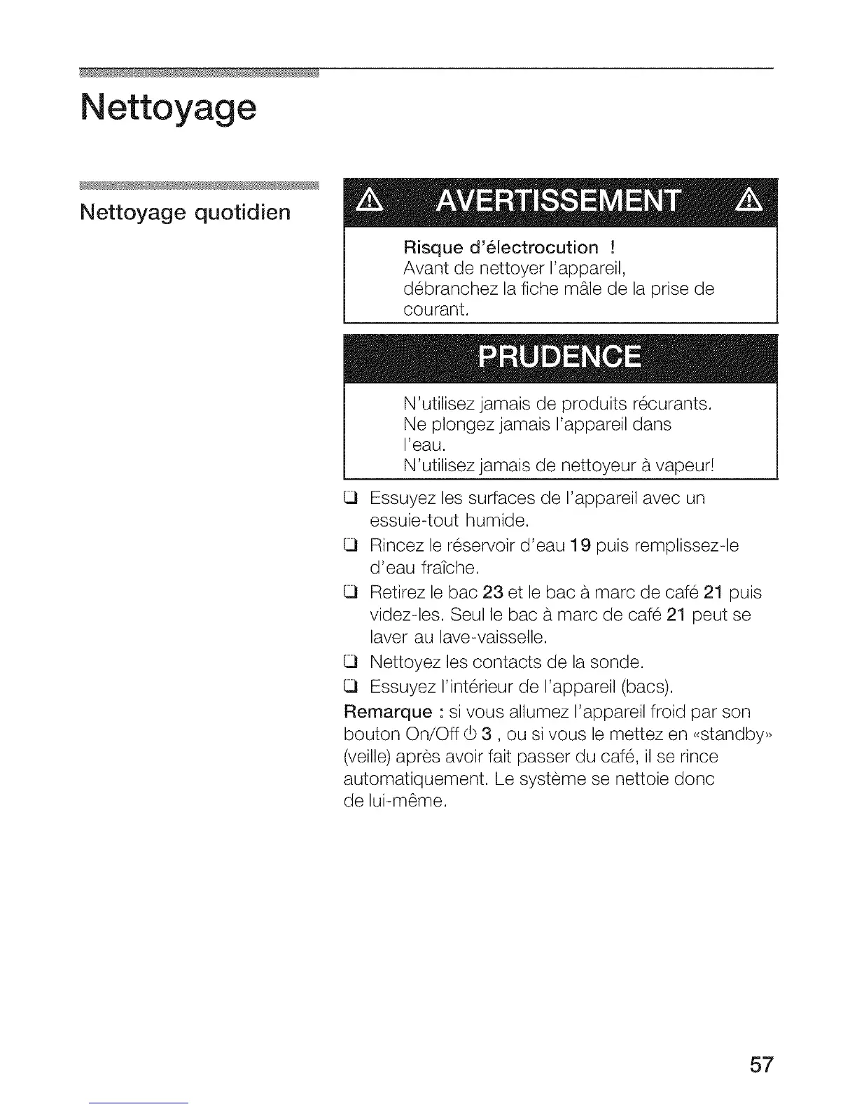 Retirez le bac 23 et le bac a marc de cafe 21 puis