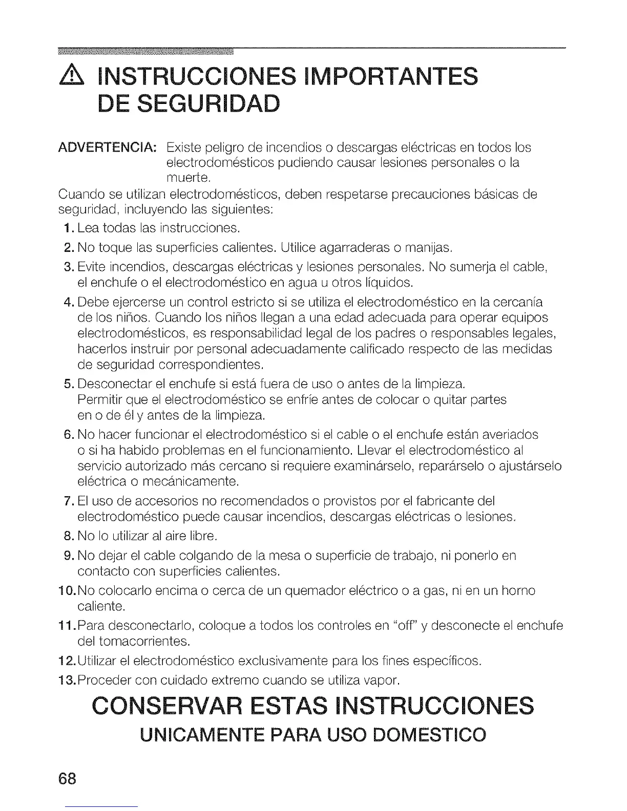 12. Utilizar el electrodomestico exclusivamente para los fines especificos.