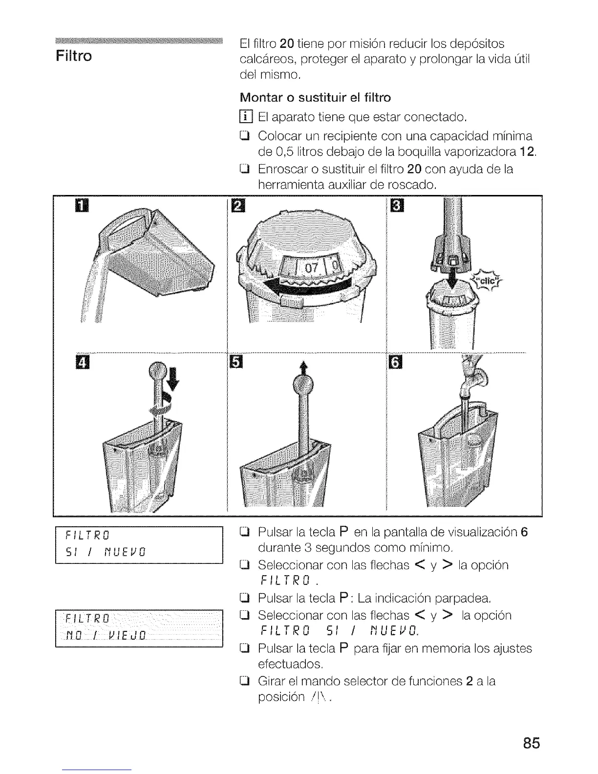 Enroscar o sustituir el filtro 20 con ayuda de la