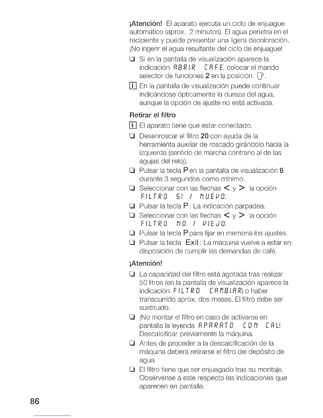 maquina debera retirarse el filtro del deposito de