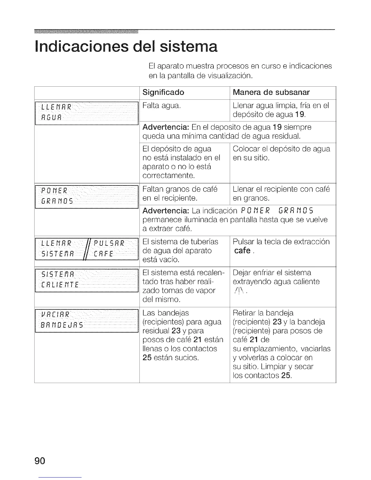 lndicaciones del sistema