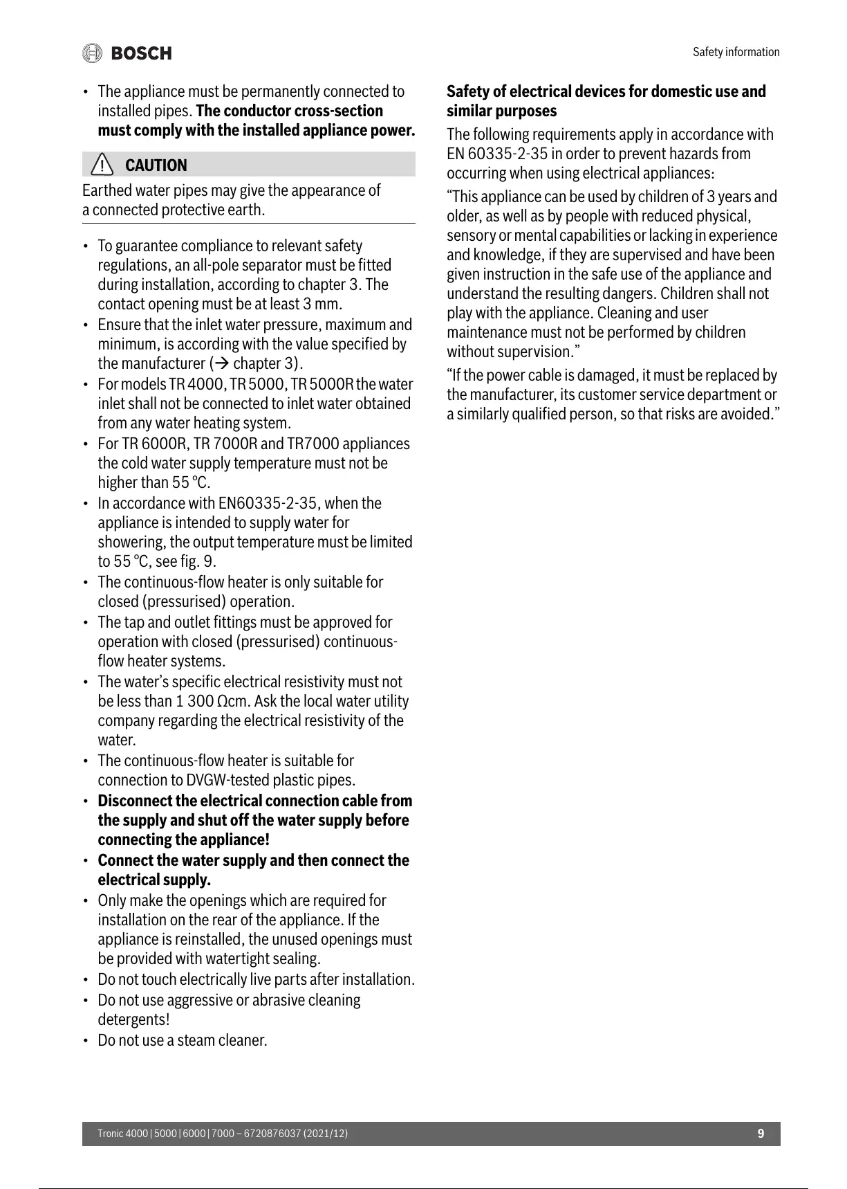 EN 60335-2-35 in order to prevent hazards from