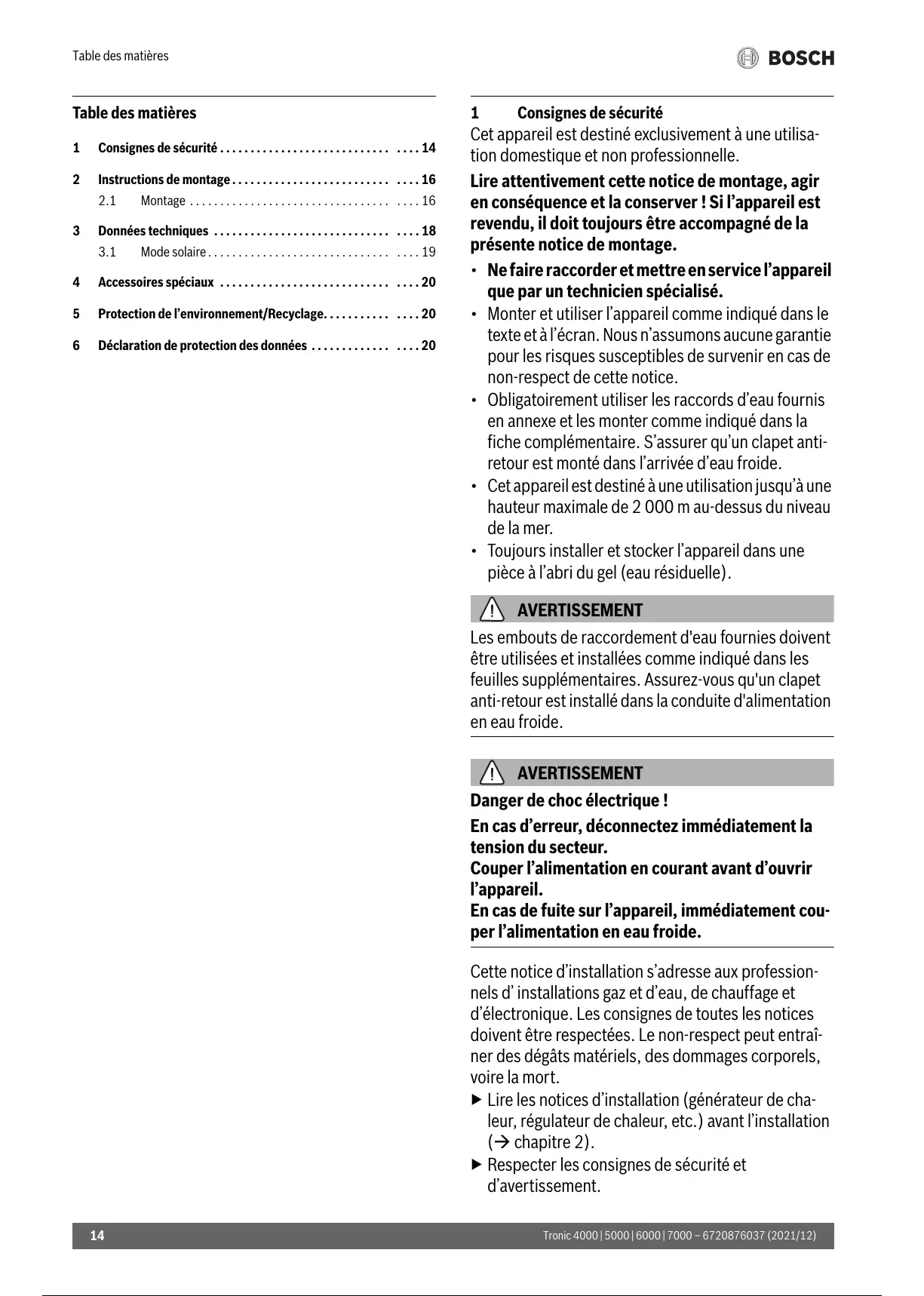 1 Consignes de sécurité . . . . . . . . . . . . . . . . . . . . . . . . . . . . . . . . 14