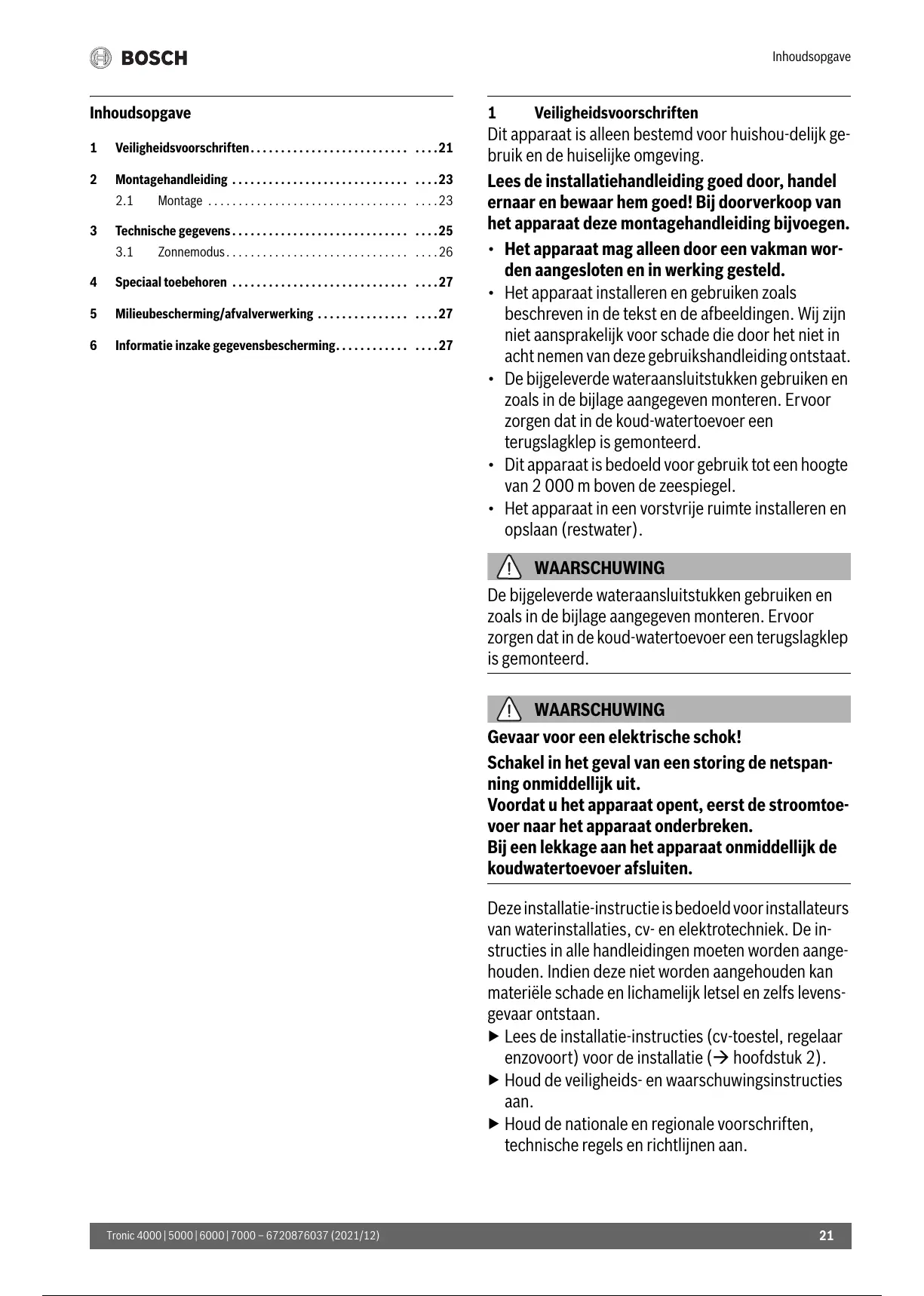 1 Veiligheidsvoorschriften. . . . . . . . . . . . . . . . . . . . . . . . . . . . . .21
