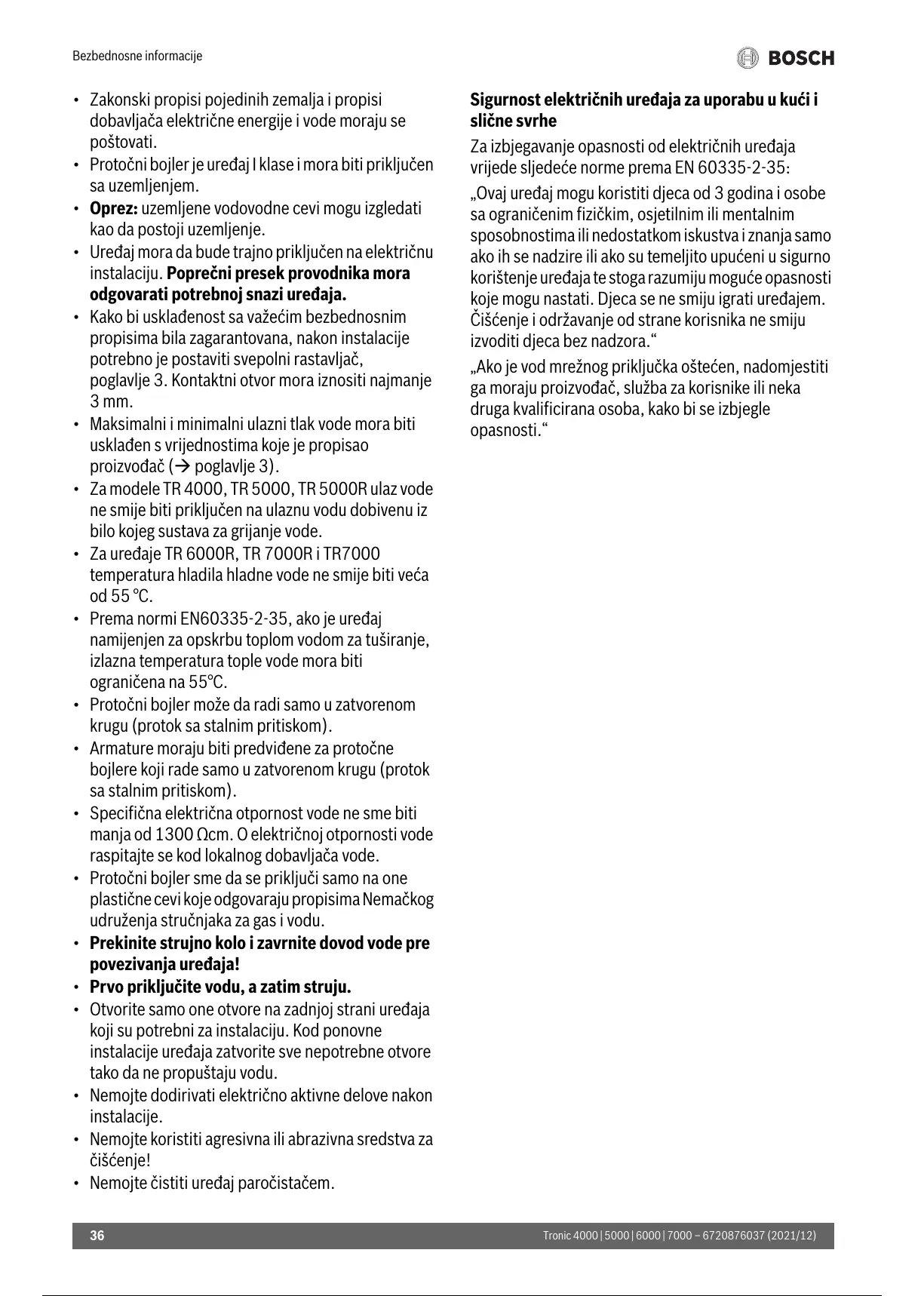 • Protočni bojler je uređaj I klase i mora biti priključen