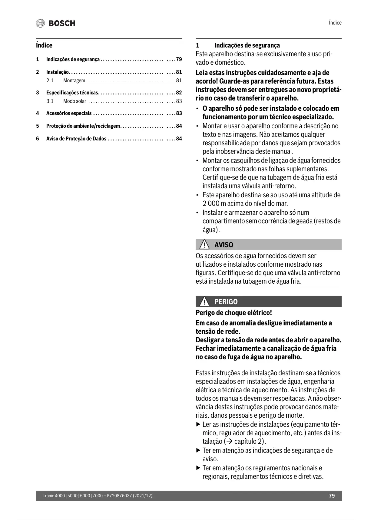 1 Indicações de segurança . . . . . . . . . . . . . . . . . . . . . . . . . . . . . .79